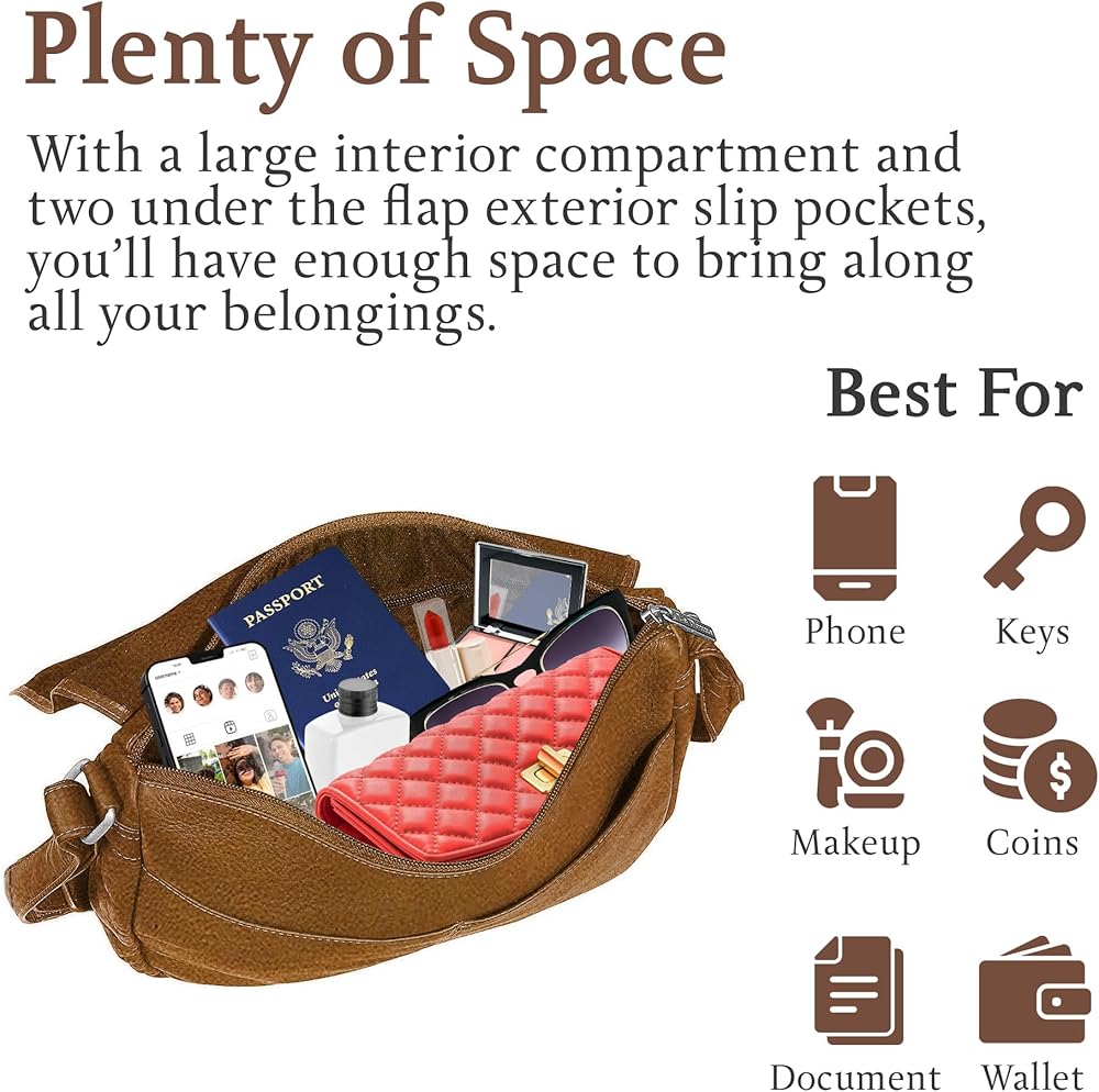 Plenty of Space – With a large interior compartment and two under the flap exterior slip pockets, you'll have enough space to bring along all your belongings.
