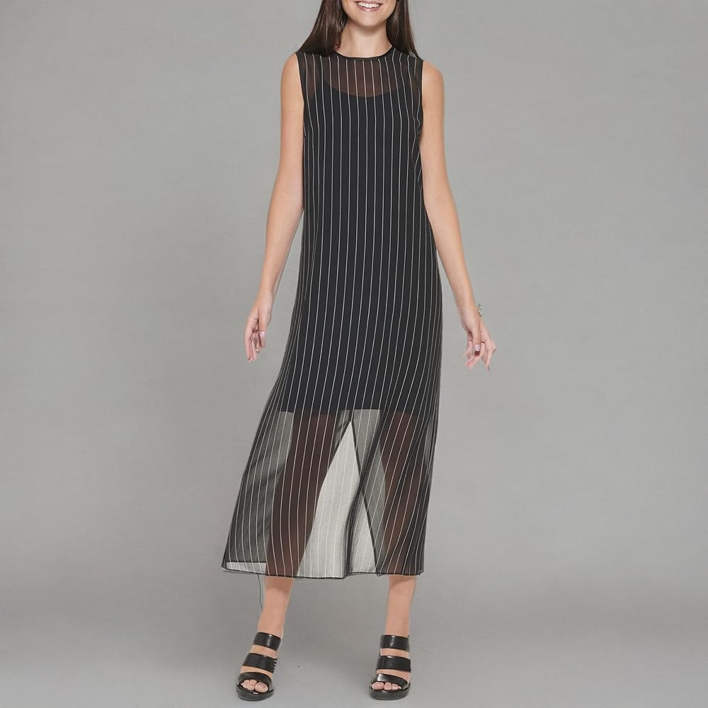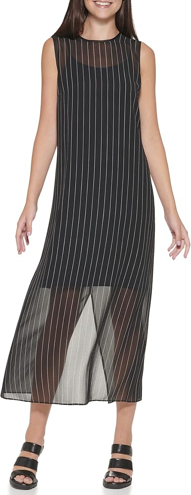 فستان DKNY الرياضي للنساء هو فستان متوسط الطول مطبوع مبطن جزئيًا بسحاب للإغلاق