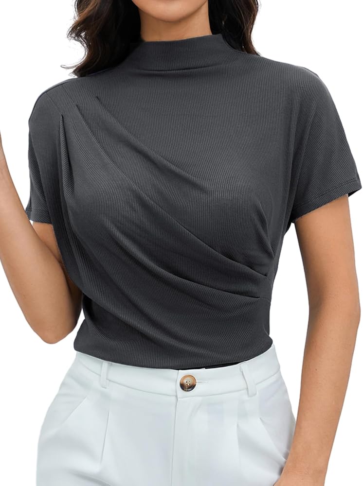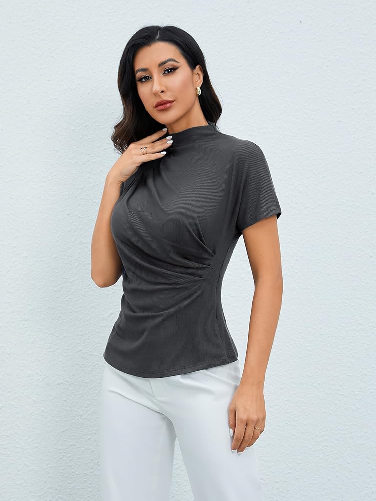 - التصميم: رقبة وهمية، كم قصير، ياقة واقفة، مكشكشة، ياقة واقفة، لون ثابت، مقاس عادي، سادة، نمط كاجوال