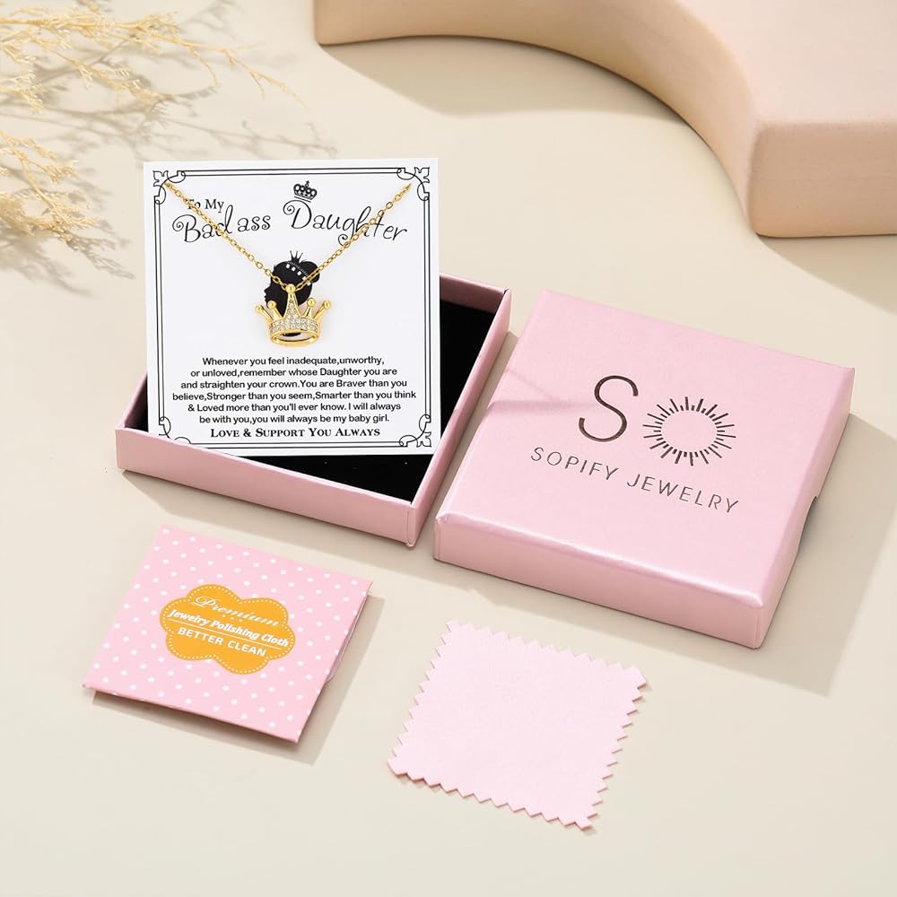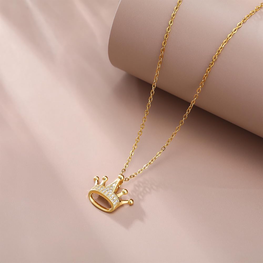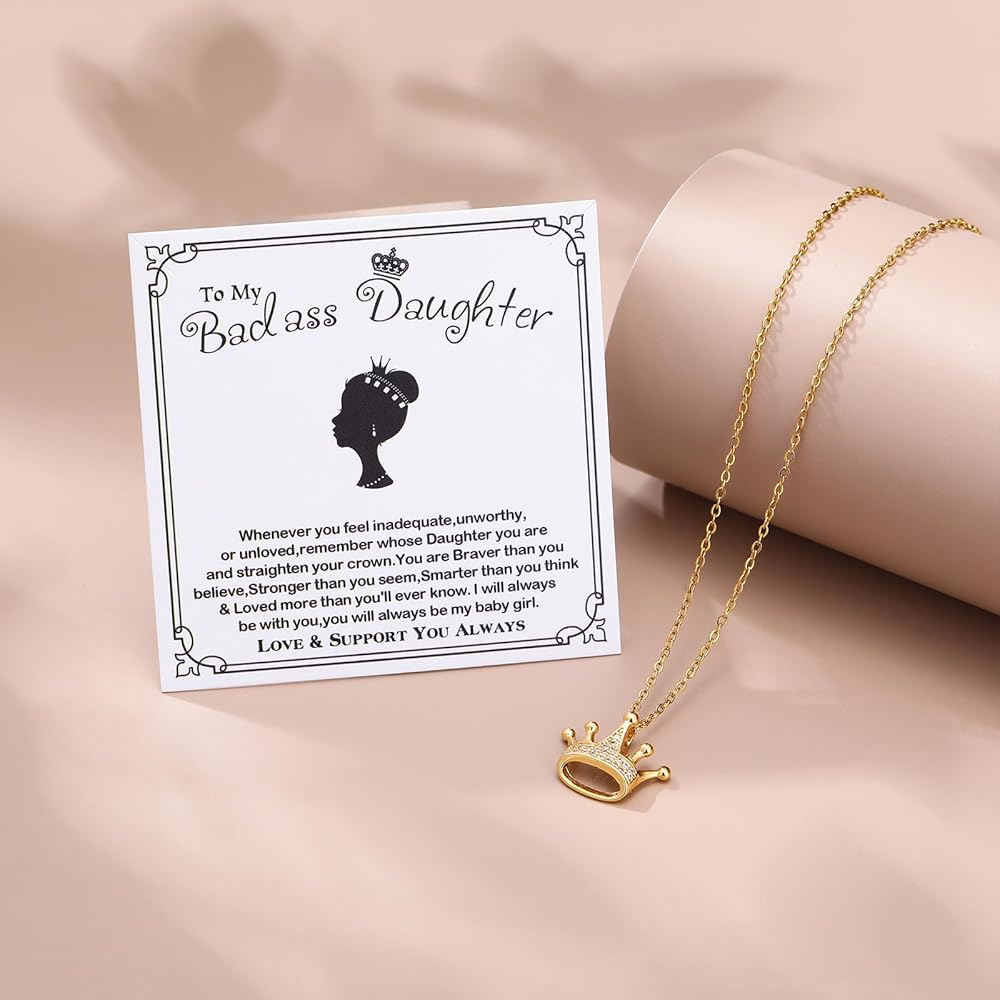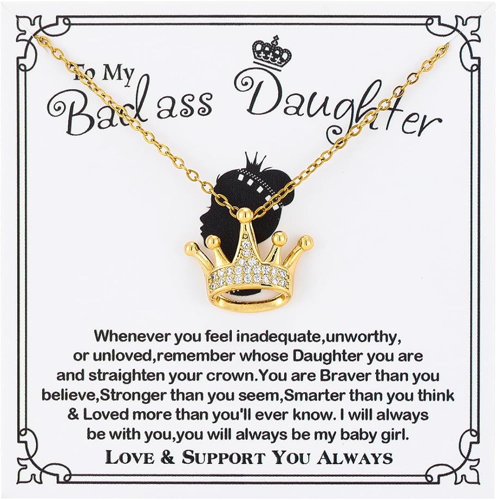 👑【قلادة للابنة】--قلادة على شكل تاج لابنتي مصنوعة من الفولاذ المقاوم للصدأ عالي الجودة والزركون المكعب، خالية من النيكل ولا تسبب الحساسية، سلسلة القلادة قوية وقوية، ولن تنكسر عليك.