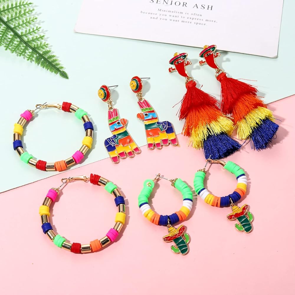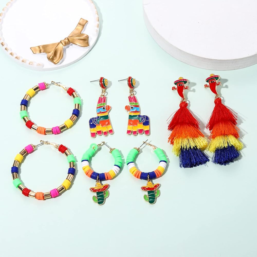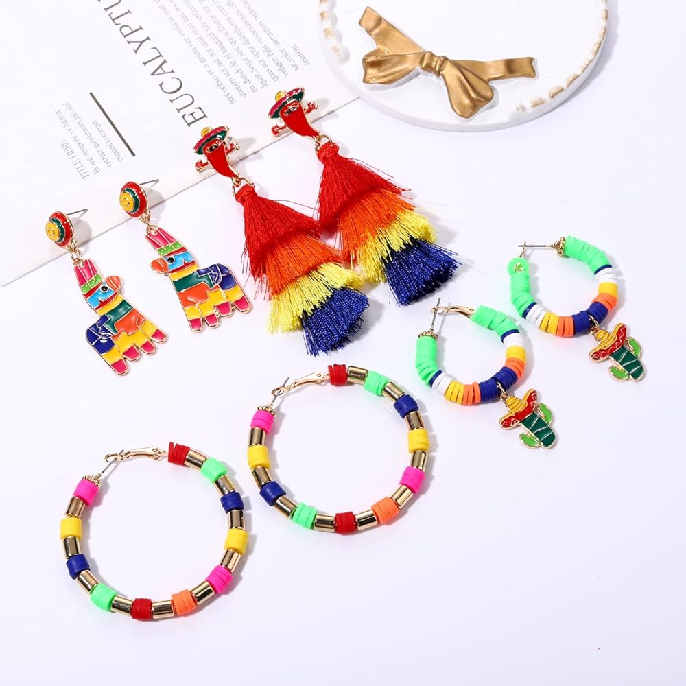 مجموعة أقراط سينكو دي مايو هذه ذات طابع مكسيكي، وتتكون من أقراط بيناتا ملونة، وأقراط شرابة الفلفل الحار المكسيكي، وأقراط دائرية على شكل قبعة الصبار وأقراط دائرية ذات طابع مكسيكي. جميعها طريقة رائعة لإضافة جو احتفالي إلى سينكو دي مايو حتى توفر لك أقراط العيد الخاصة بنا إحساسًا بالعطلات المبهجة وتبقي الروح المكسيكية حية من حولك.