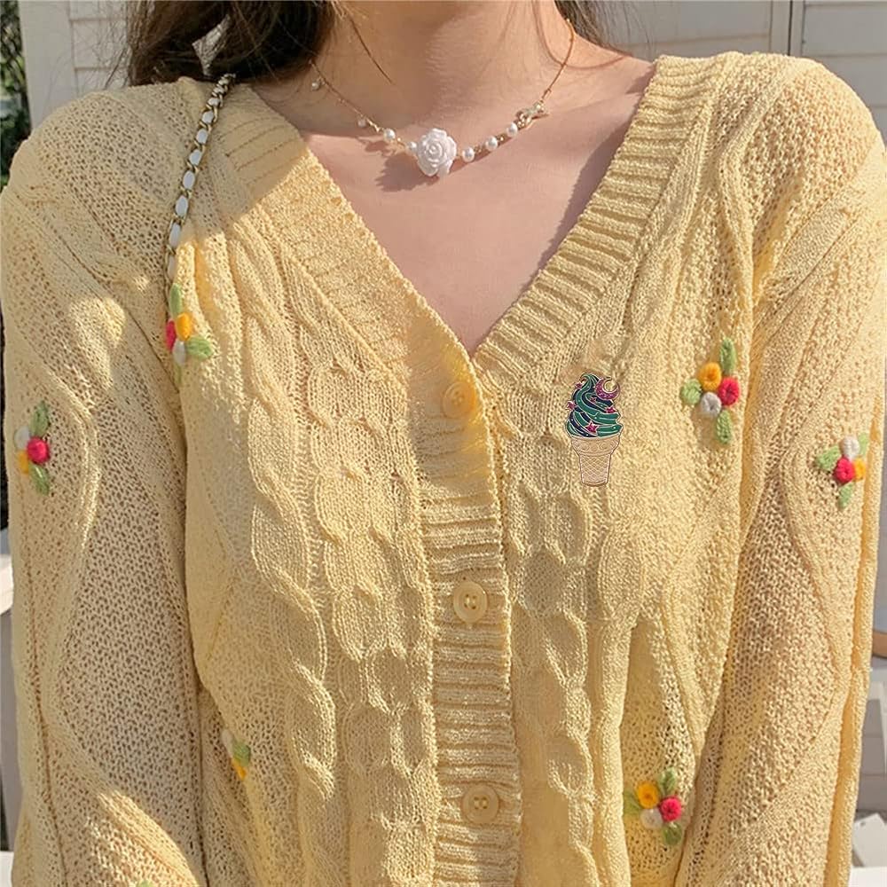 دبوس بروش على شكل ايس كريم لطيف لطيف على شكل ايس كريم، دبوس بروش لطية صدر السترة وشنطة الظهر والملابس والقبعات والجاكيت، هدية مجوهرات للنساء والاطفال، مصنوع من خليط معدني من الستيل بدون احجار كريمة