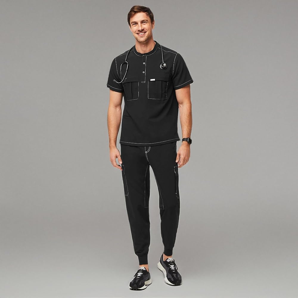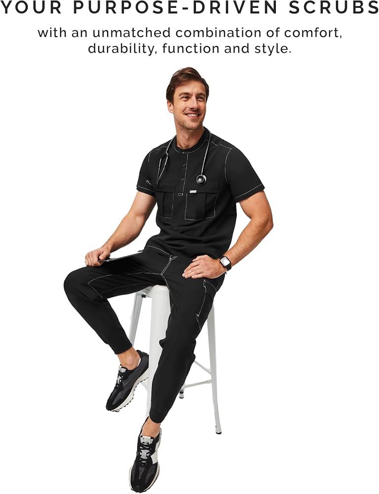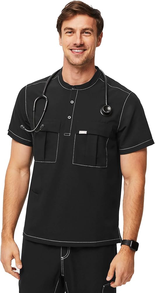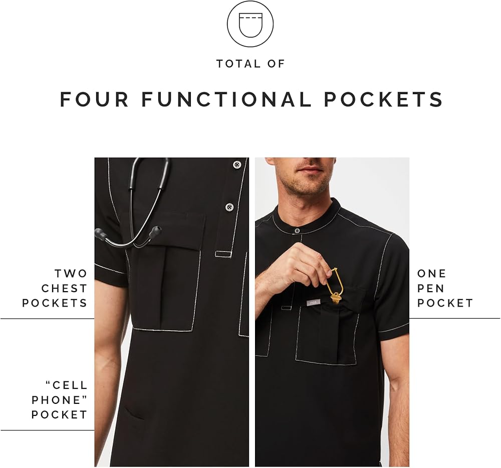 مظهر أنيق واحترافي - تم تصميم الجزء العلوي من Milot الطبي للرجال بخط رقبة هينلي ونير خلفي وفتحات جانبية بمقاس كلاسيكي بحيث تبدو أنيقًا واحترافيًا دون التضحية بالراحة والأداء.