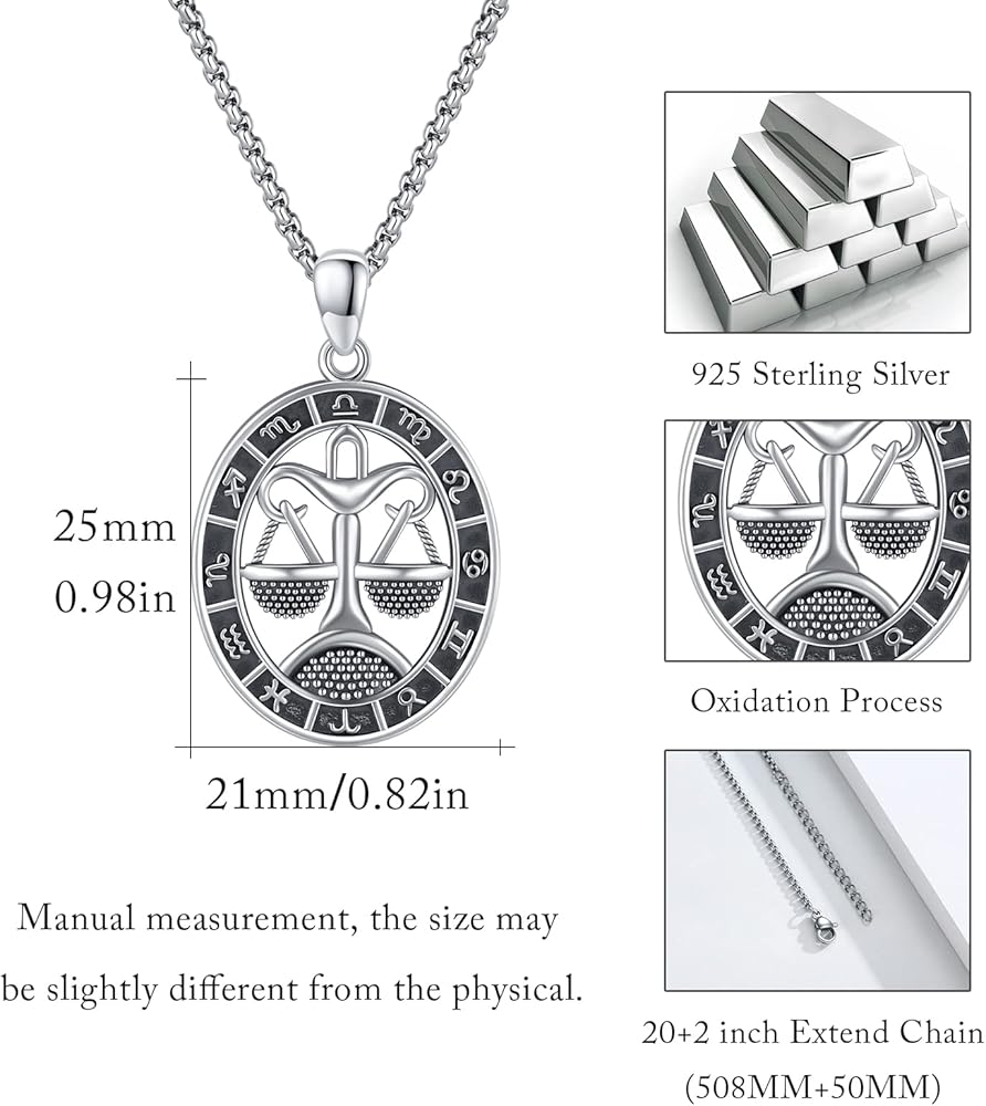 ❤حجم القلادة الرجالية من LiBRA Gifts❤: 25 مم × 21 مم/0.98 بوصة × 0.83 بوصة. وزن القلادة: 4.1 جرام. طول السلسلة: 20+2 بوصة. عرض السلسلة: 2.0 ملم. سلسلة تلطيخ قوية للغاية.