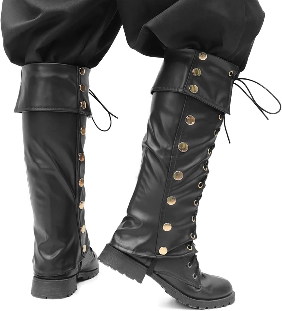 تشمل العبوة: أغطية أحذية القرصان*1، متوفرة بلونين، أسود/بني كلاسيكي.
