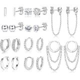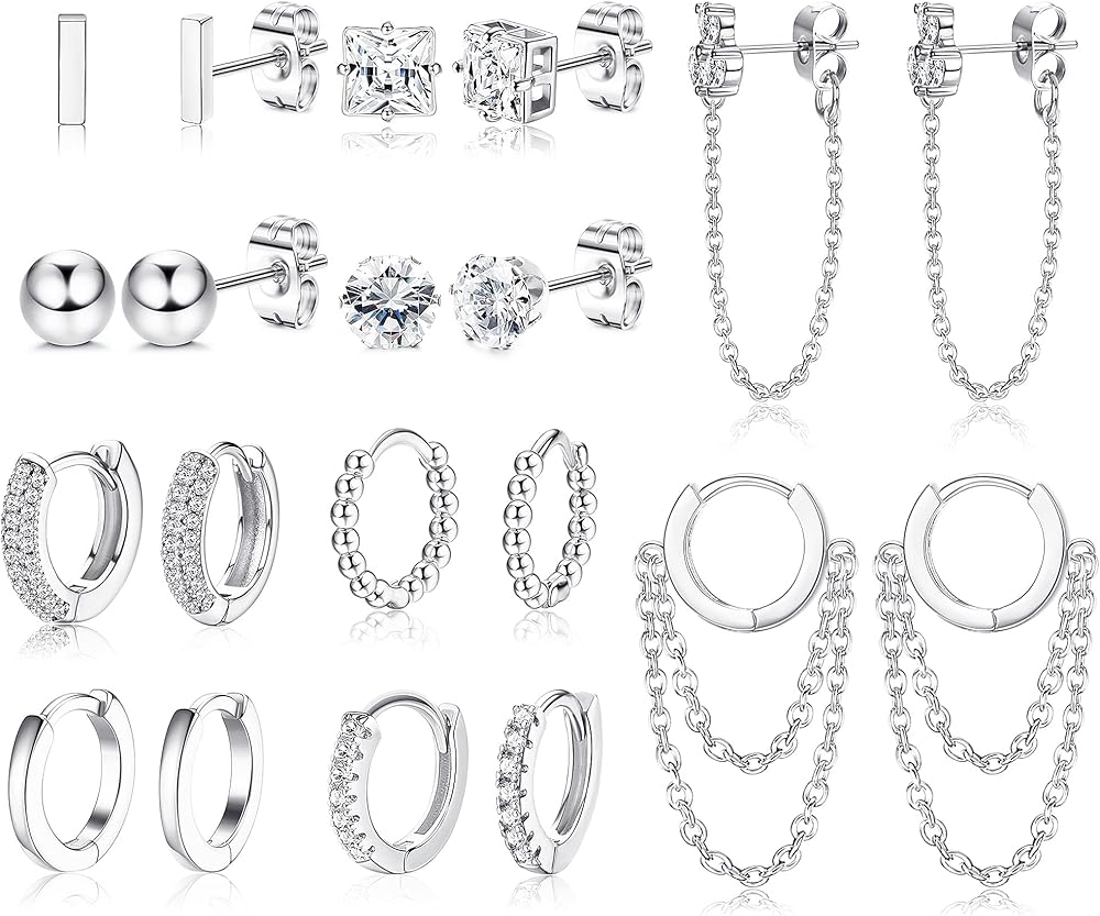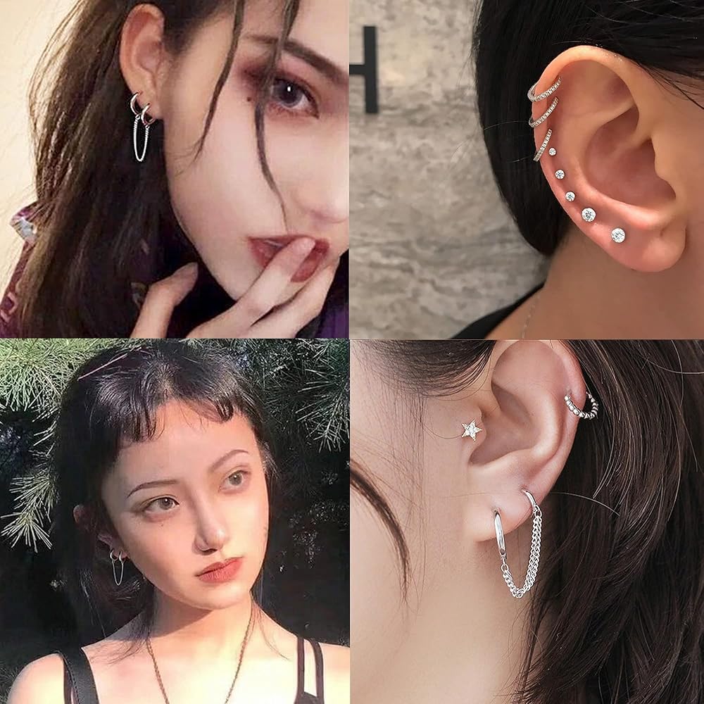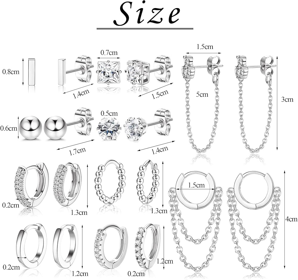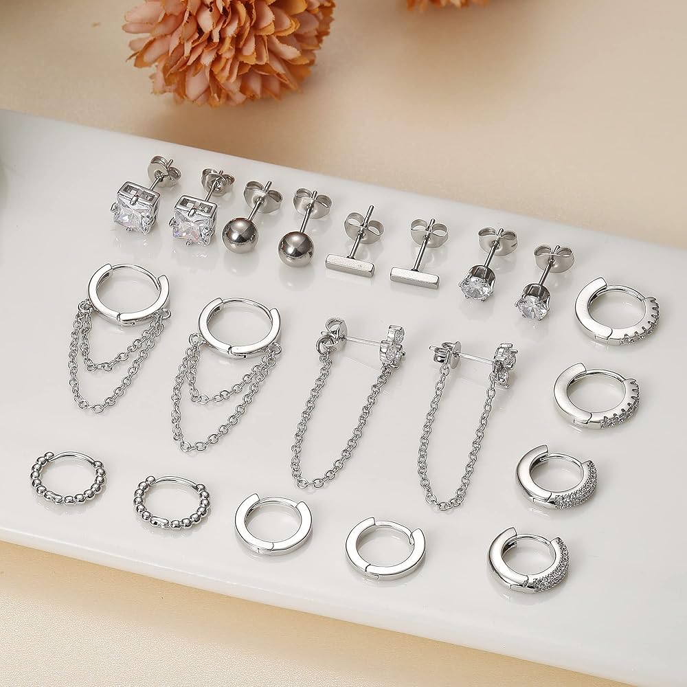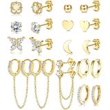 JeryWe 10 أزواج 14K مطلية بالذهب Huggie هوب ترصيع الأقراط مجموعة للنساء الأزياء هيبوالرجينيك الصغيرة لذيذ الحد الأدنى تشيكوسلوفاكيا الكرة سلسلة القرط مجموعات لثقب متعددة