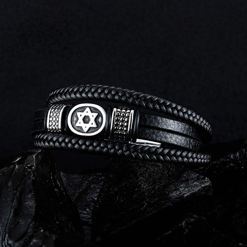 مواد فاخرة: مصنوع من الفولاذ المقاوم للصدأ عالي الجودة والجلد المضفر المتين، هذا السوار يضمن الأناقة والمتانة. تم تصميم المواد القوية لتحمل التآكل اليومي والحفاظ على مظهرها المصقول.