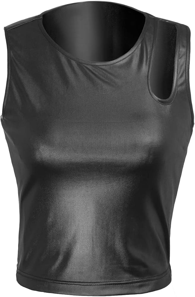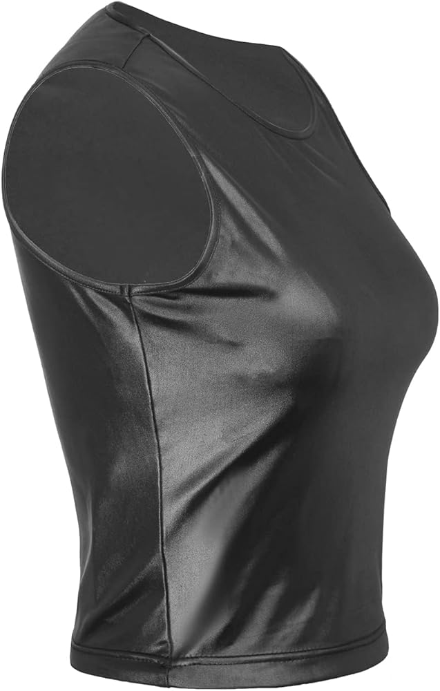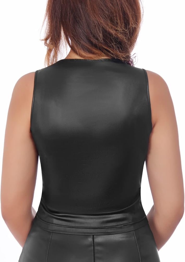 المزايا: قميص بدون أكمام برقبة دائرية من الجلد بدون أكمام، قميص بدون أكمام نسائي قصير مثير ذو فتحة ثغرة، مناسب لقميص بدون أكمام صيفي أنيق للسيدات، يظهر منحنيات المرأة، قميص بدون أكمام رفيع من البولي يوريثان مسامي