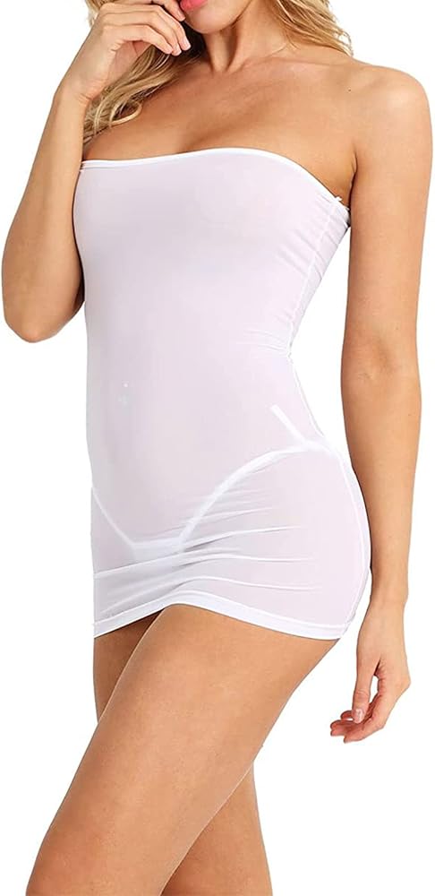 - Semi see-through,Strapless ,elastic chest,Sleeveless, pull-on elastic closure