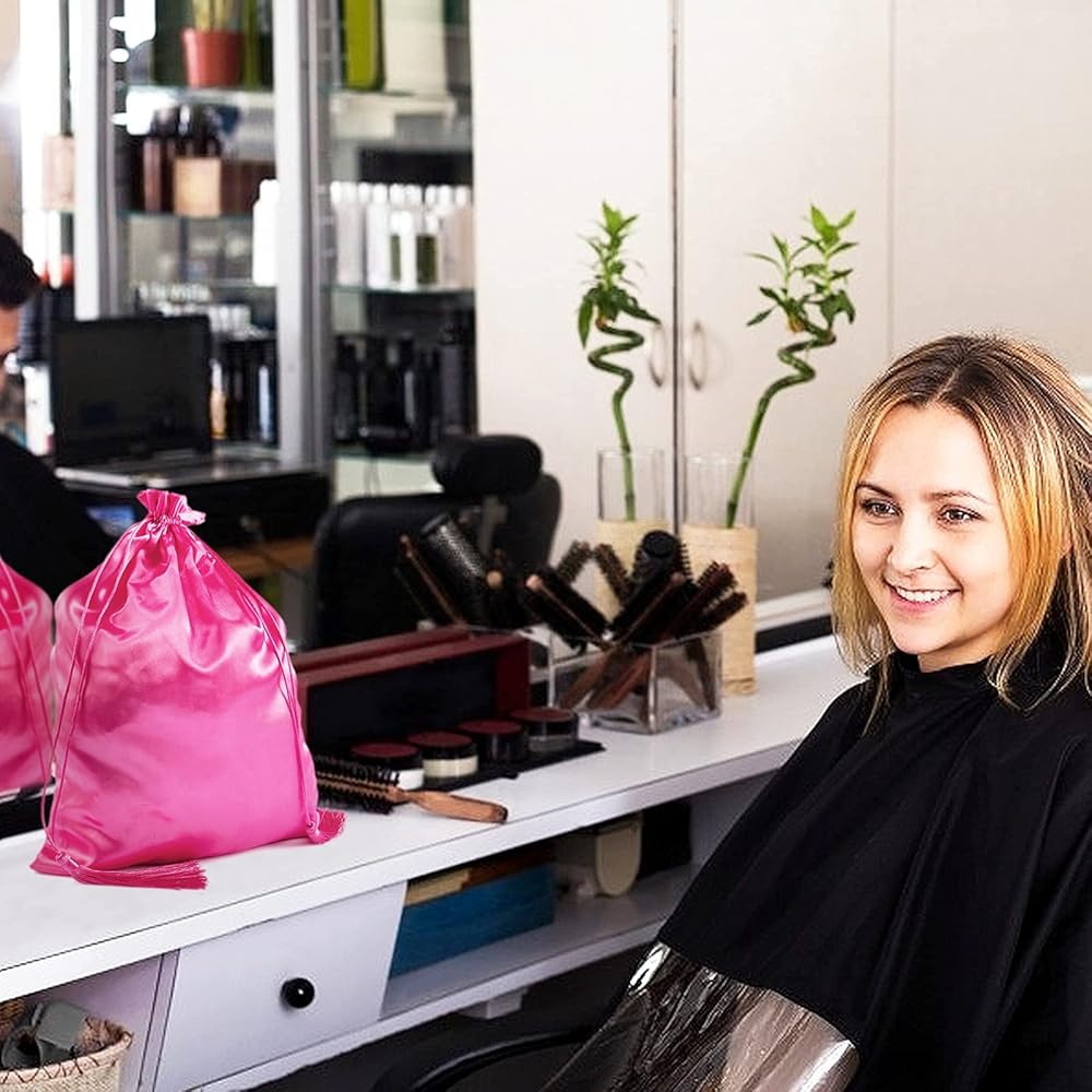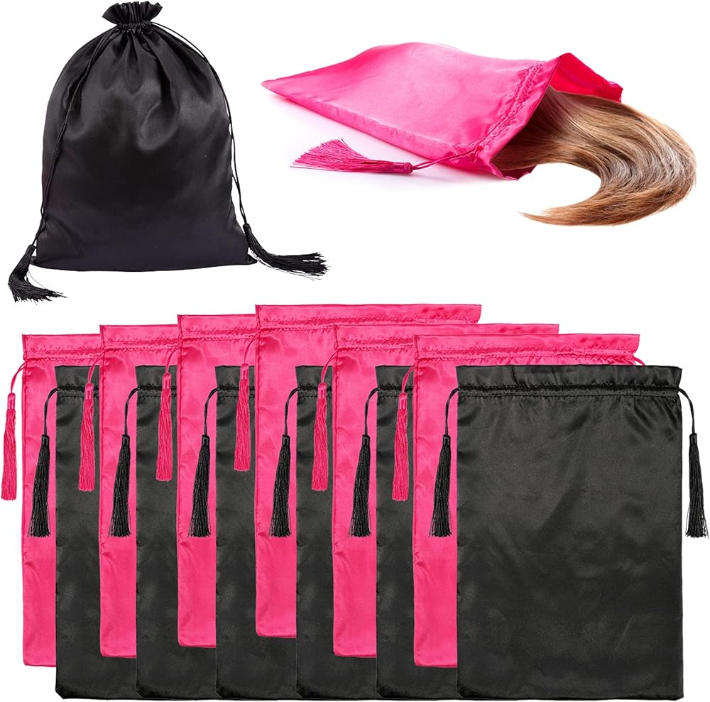 Package Includes: You will receive 12pcs silky satin wig bags, 6pcs rose red, 6pcs black, which are most popular color, and can be shared with your families and friends to store wigs, hair extensions, bundles, and other hairdressing tools.