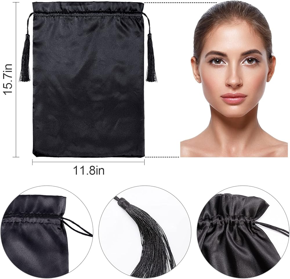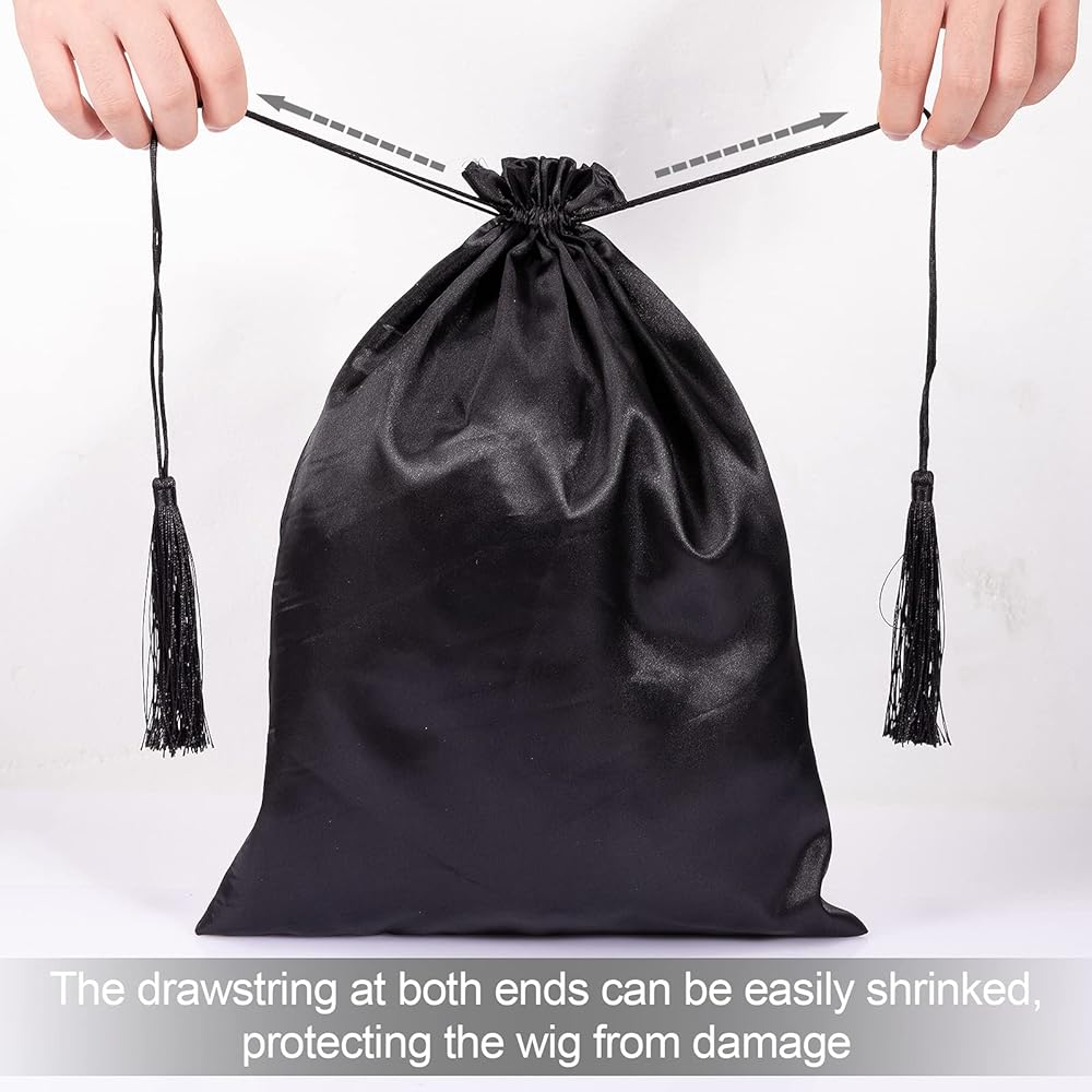 Easy to Use: Our satin wig bag is designed with two drawstrings at the openings at both ends, which makes easy to open and close. And the drawstring ends have beautiful and fashion tassels.