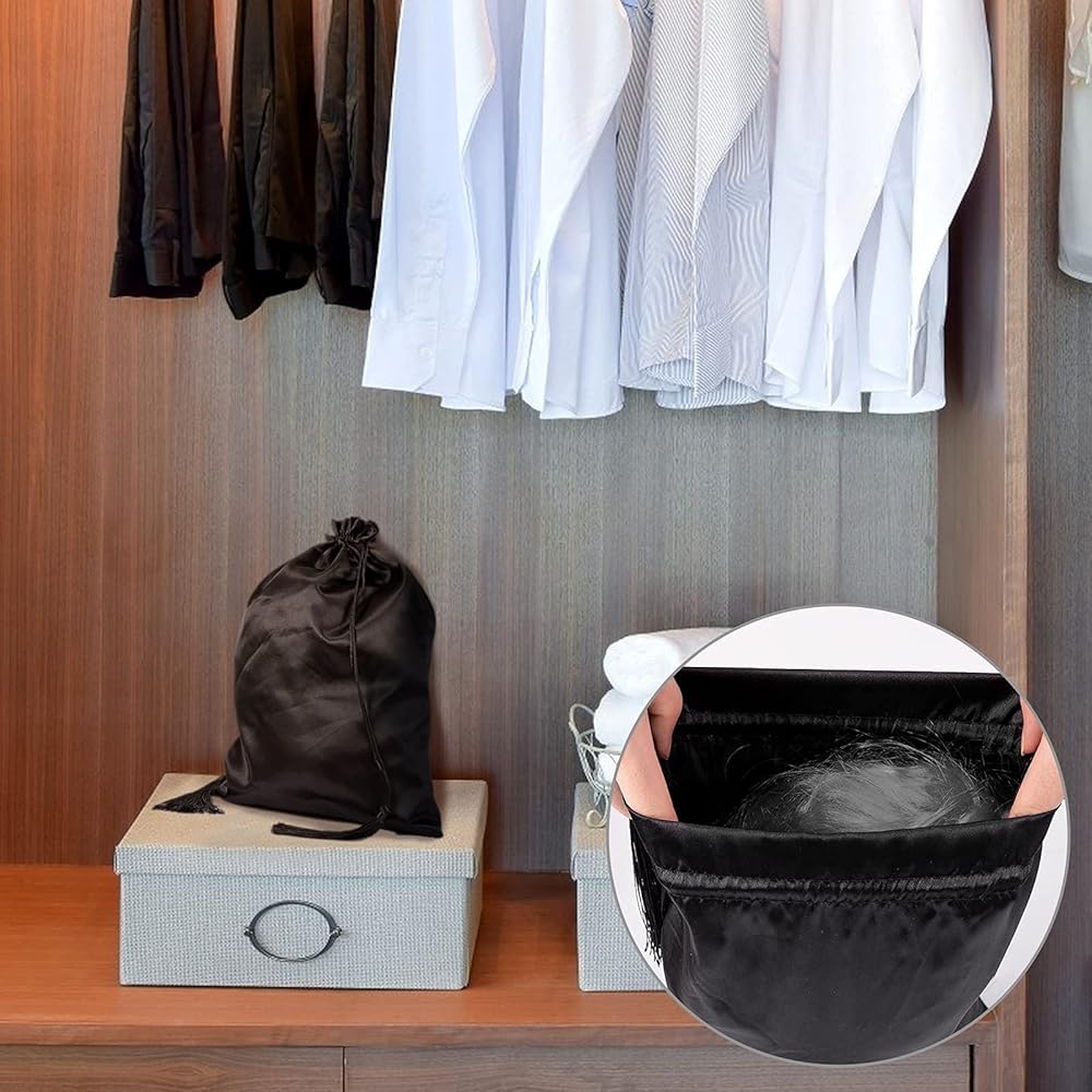 Large Capacity: This silky satin wig bag is 16 x 12 inch, which is big enough to hold daily gifts, hairdressing products such as hair extension and hair binding, small clothes, jewelry, toys, etc.