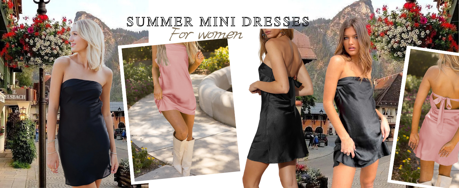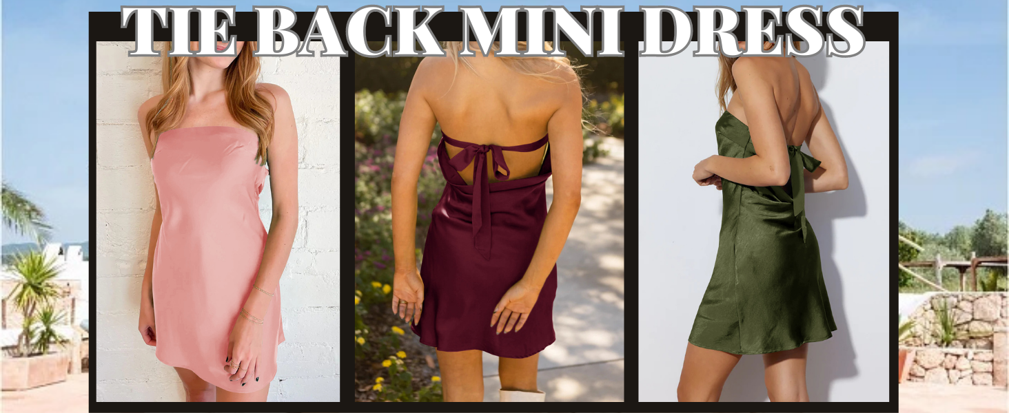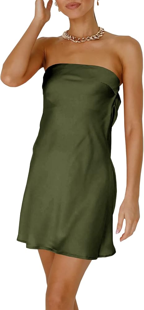 فستان Heysolo نسائي من الساتان بدون أكتاف بدون أكمام وربطة عنق من الخلف فستان قصير مثير بدون ظهر