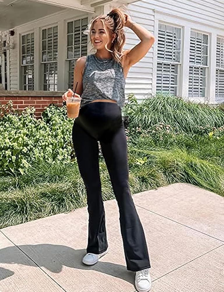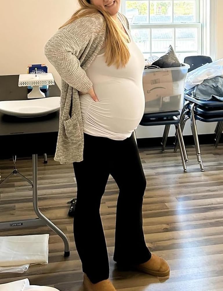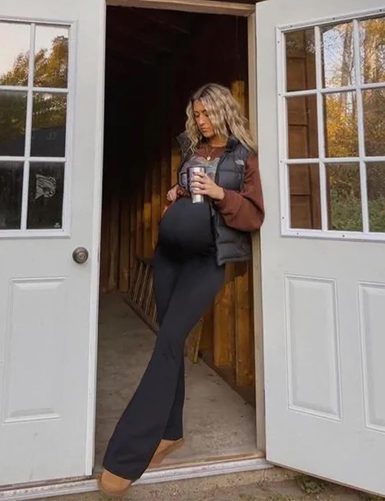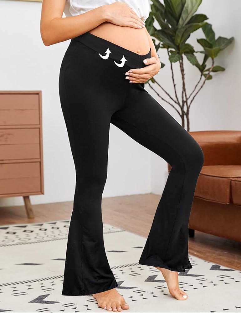 • [ناعم الزبدة]: مصنوع من 92% بوليستر و8% سباندكس، هذا السروال الضيق للحمل قابل للتمدد وخفيف الوزن وصديق للبشرة، ولكنه لن يكون شفافًا. سراويل الأمومة/ طماق الأمومة المضيئة / مع جيوب فوق البطن / قيعان جرس الأمومة / سراويل يوجا الأمومة / سراويل صالة الأمومة / طماق الحمل / ملابس الأمومة