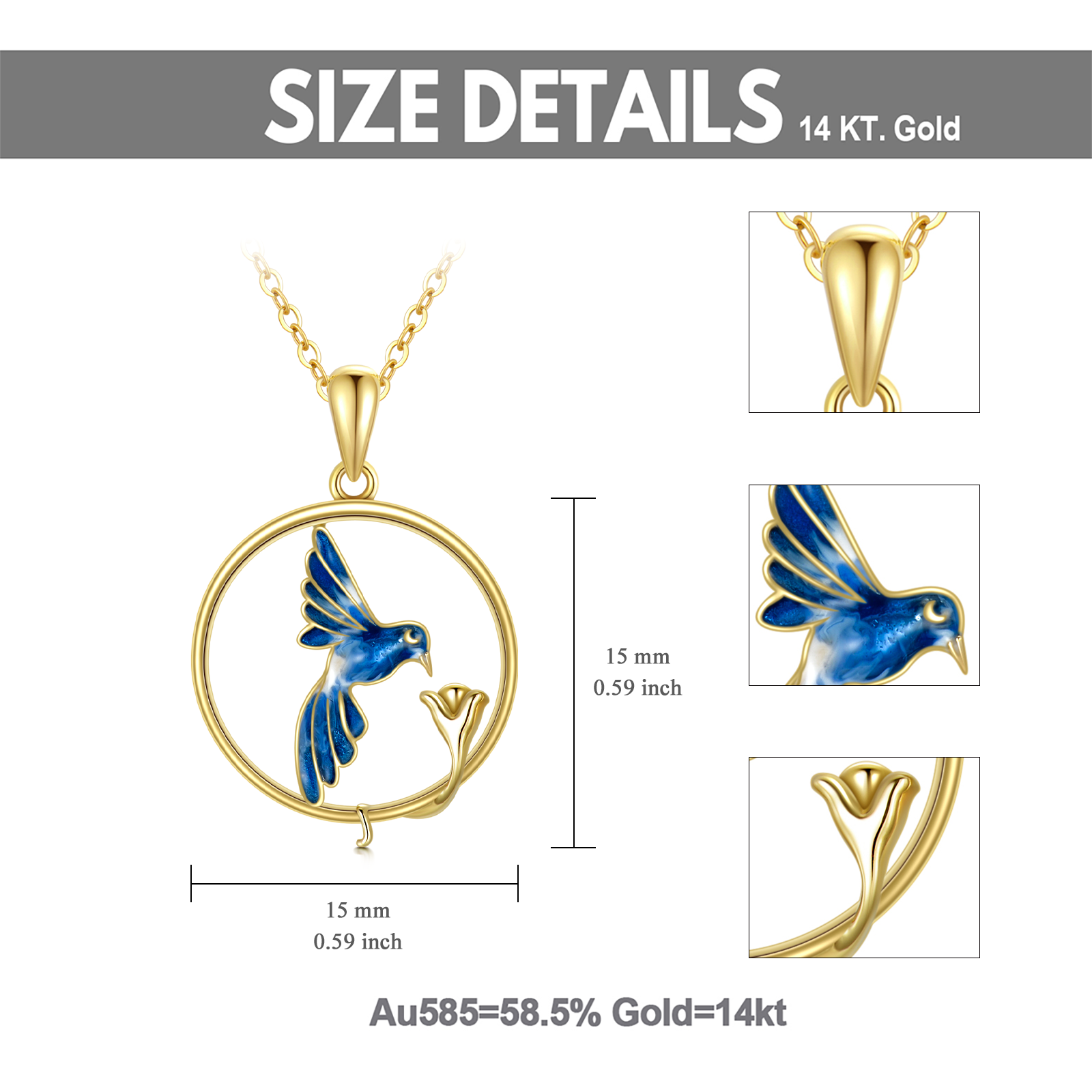 AHTAMOS 14k Solid Gold Hummingbird Necklace for Women 14K Gold Dainty Hummingbird with Rose Flower Pendant Necklace for Women