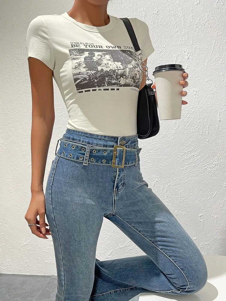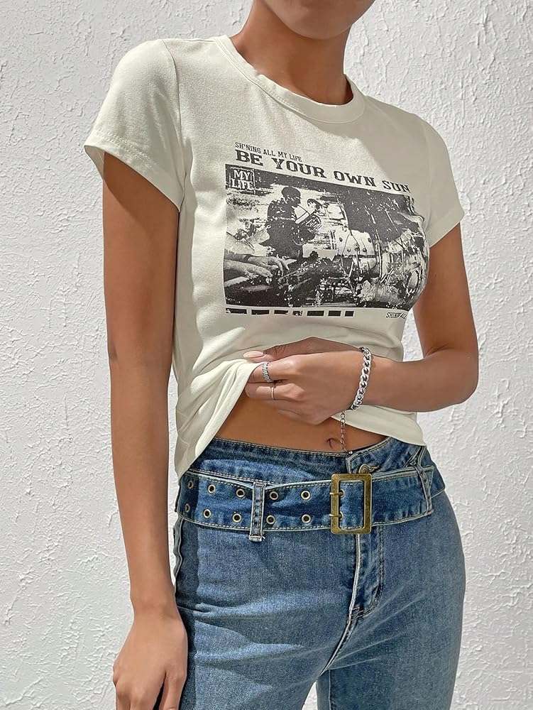 تي شيرت نسائي من SOLY HUX برسوم جرافيك تي شيرت قصير الأكمام كاجوال صيفي مطبوع عليه شعار وأكمام قصيرة