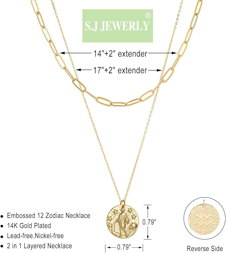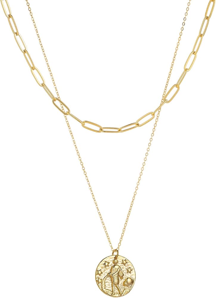 ♊ مادة مجوهرات زودياك - قلادة زودياك الذهبية للسيدات مصنوعة من النحاس عالي الجودة ومطلية بالذهب عيار 14 قيراط. متوفرة في كل برج، اعرض شهر ميلادك بارتداء هذه القلادة مع أي نوع من الملابس. قلادة الكوكبة هذه متوفرة في برج الحمل، والثور، والجوزاء، والسرطان، والأسد، والعذراء، والميزان، والعقرب، والقوس، والحوت، والدلو، والجدي.