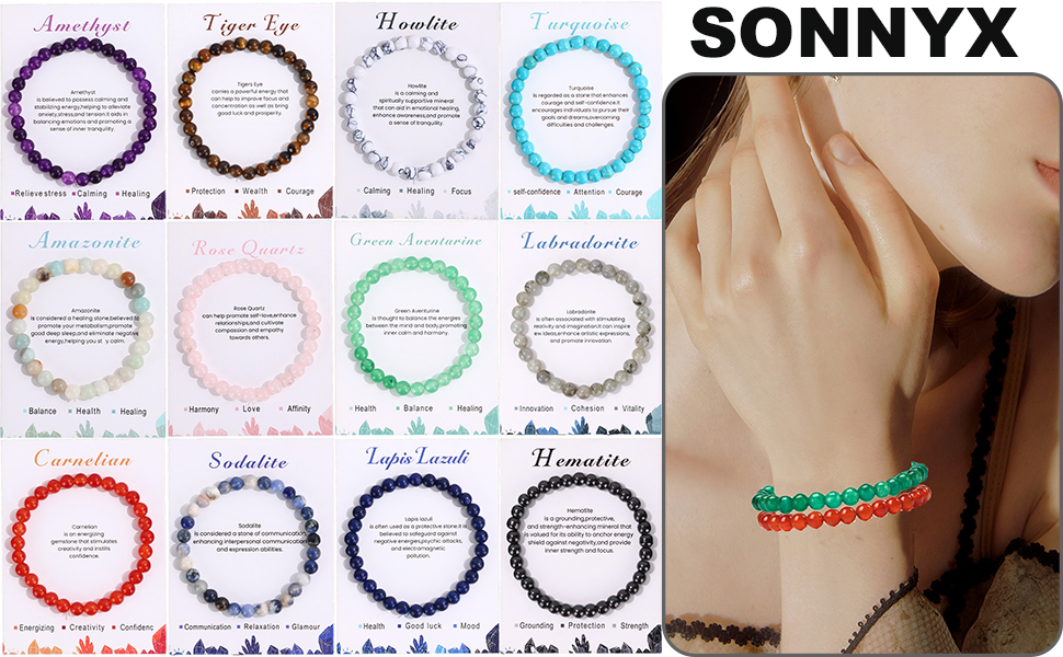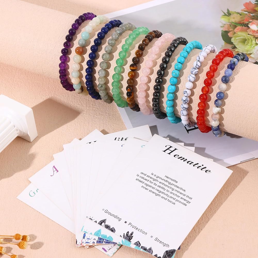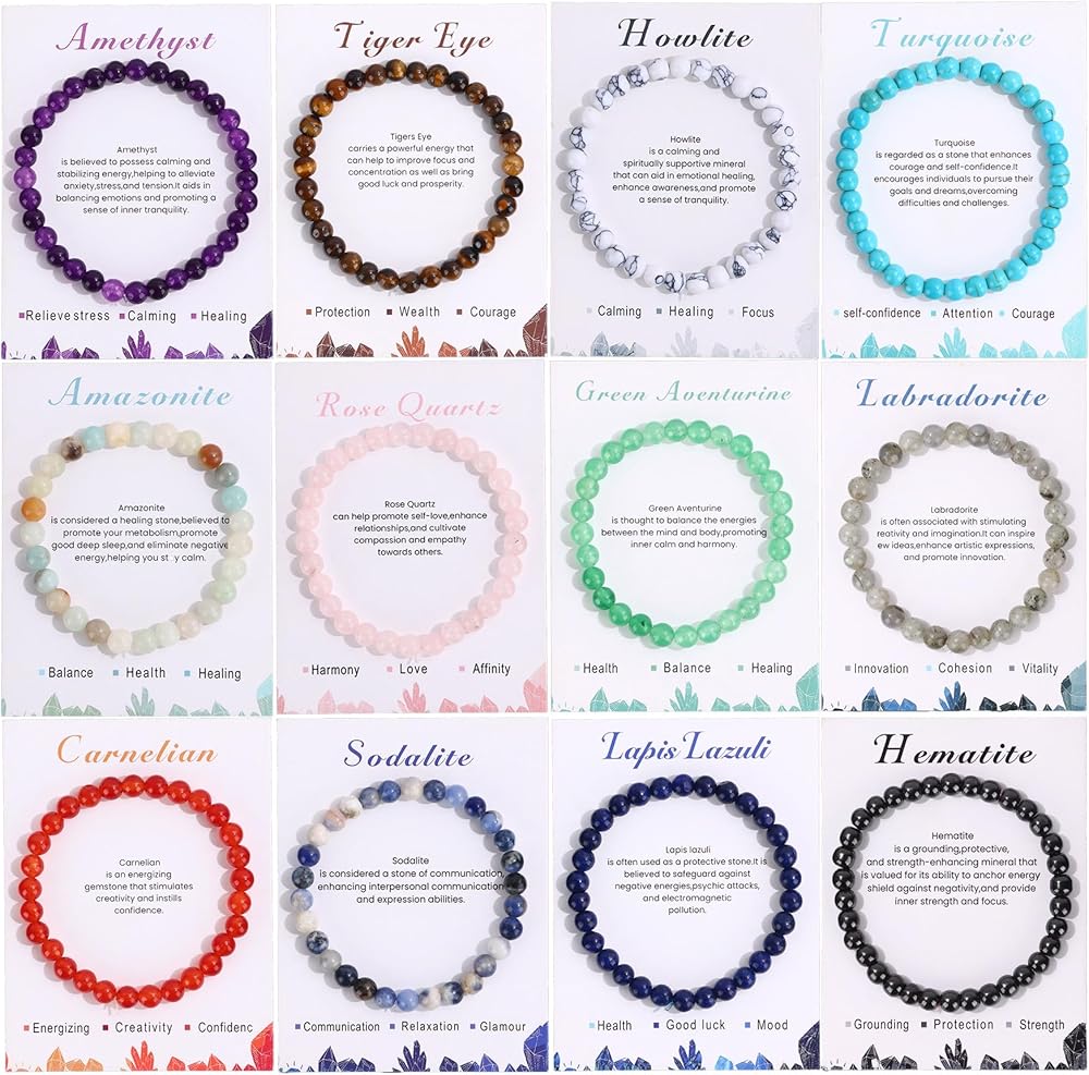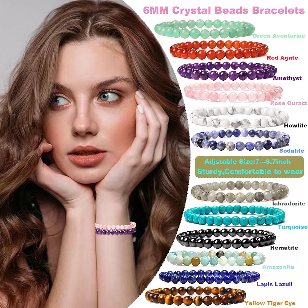❥مجموعة أساور من الحجر الطبيعي❥- يوجد 12 قطعة من أساور الأحجار الكريمة مقاس 6 مم في العبوة، بما في ذلك أفضل الأساور الحجرية العلاجية مثل سوار الجمشت، وسوار عين النمر، وسوار الكوارتز الوردي، وسوار الأمازونيت، وسوار اللازورد، وسوار العقيق الأحمر، إلخ. كل سوار كريستال للنساء والرجال له روحانية خاصة، مما يوفر لك تأثيرات علاجية مختلفة للطاقة. أرسل حبك وبركاتك إلى عائلتك وأصدقائك مع سوار الطاقة هذا المليء بحبك ورعايتك.