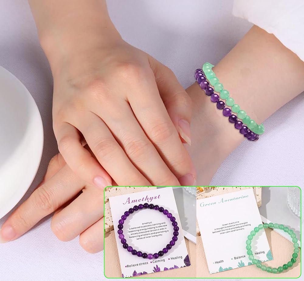 ❥سوار كريستال علاجي❥- يأتي سوار الكريستال مع بطاقة تمهيدية حول وظائف الكريستال، مما يسمح لك بتجربة أفضل للسحر الساحر والطاقة الفريدة لهذه الأساور المصنوعة من الخرز الحجري. تعزز هذه الأحجار التوازن والأمل والتأريض، مما يسمح لك بالتنقل الحياة بثقة وحماس. قد يمنحك ارتداء هذه الأساور الكريستالية الروحية بعض الراحة والطاقة العلاجية.