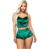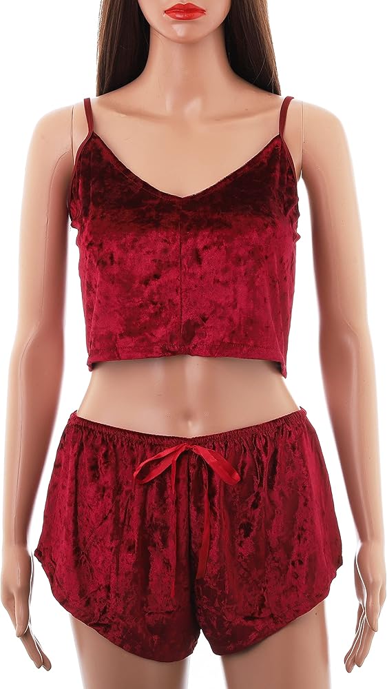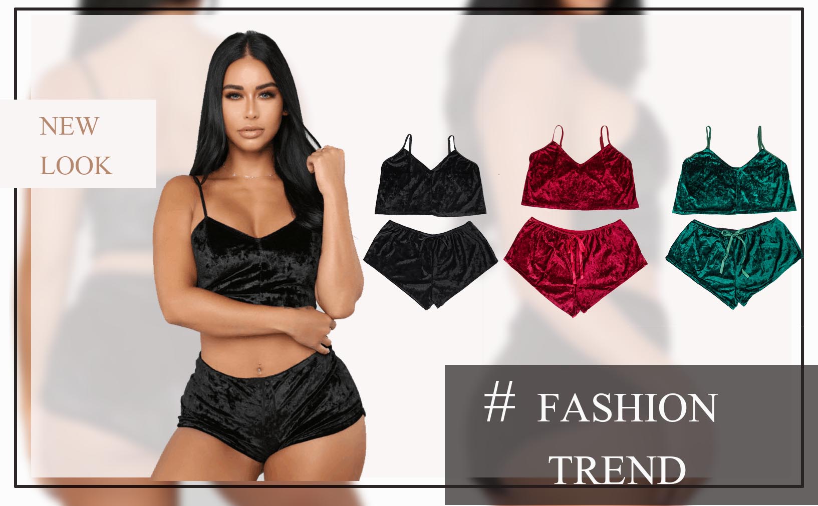 (التصميم): مادة مخملية، حمالات وسروال قصير متطابق، في منتصف الحمالات يوجد قوس صغير، النمط العام بسيط، ولكن يمكن تسليط الضوء على الشكل العلوي برقبة على شكل حرف V مع حزام سباغيتي قابل للتعديل، خصر مطاطي قصير، صغير زخرفة على شكل فيونكة، مقاس نحيف، لون ثابت.