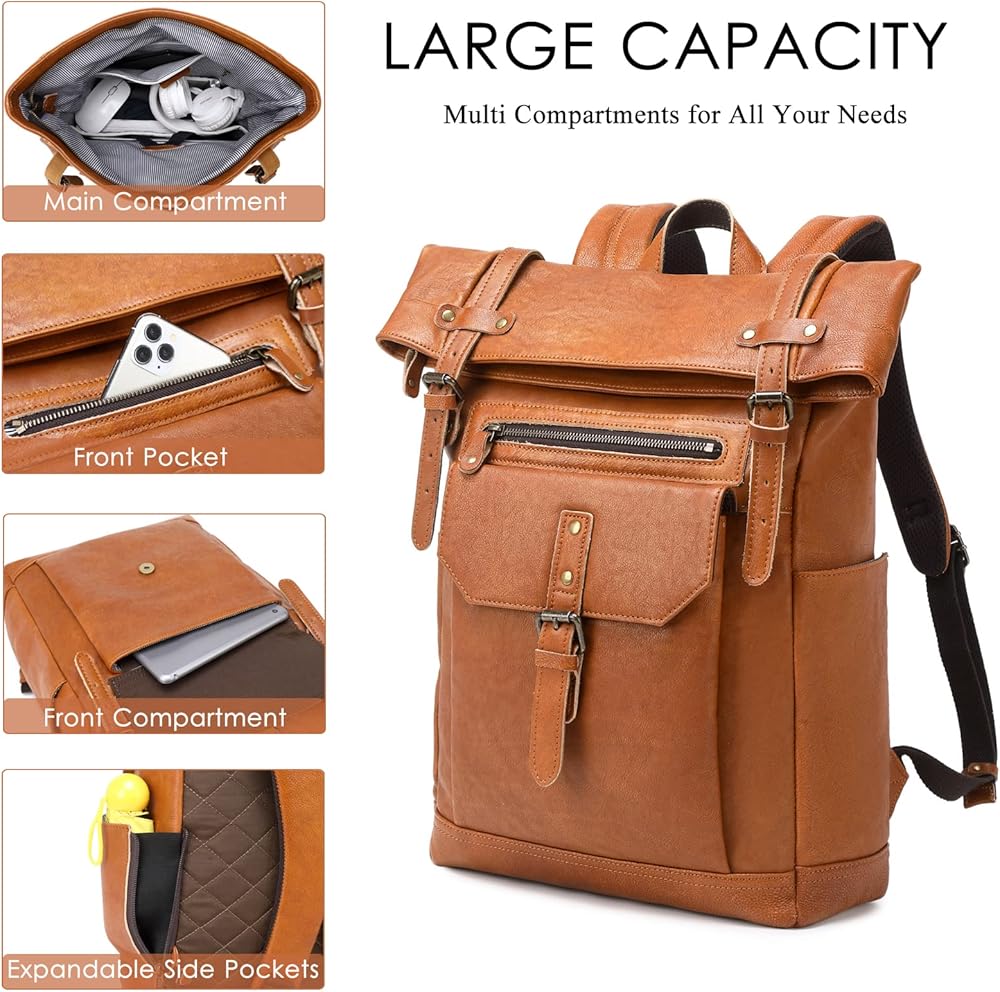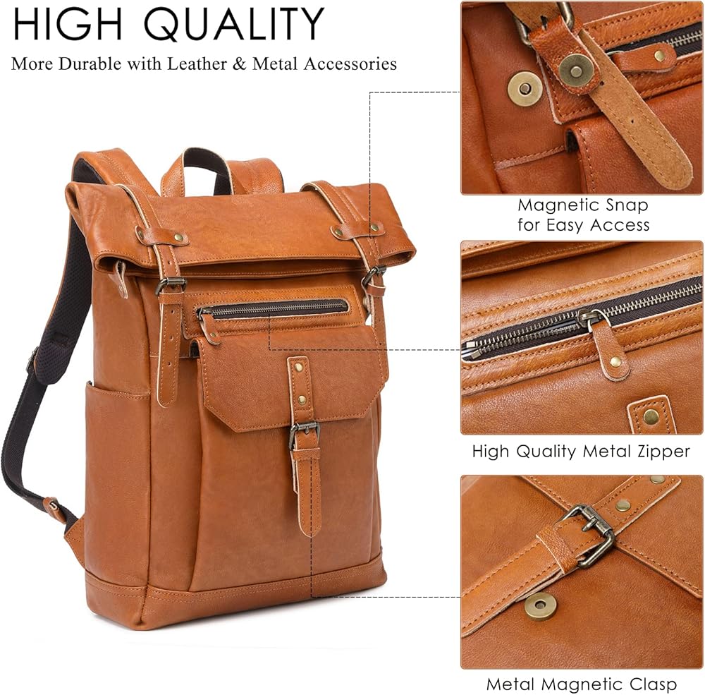 【خامة عالية الجودة】حقيبة الظهر الجلدية G-FAVOR مصنوعة من جلد أصلي 100%، والمعروف بخصائصه السميكة والمتينة، وسيدوم عمر هذه الحقيبة الجلدية العتيقة لفترة طويلة، وقد صُنعت لتتقدم في السن بشكل جميل مع مرور الوقت. تجميع بسحابات YKK عالية الجودة وأبازيم معدنية. حرفية عالية الجودة تجعل كل حقيبة ظهر جلدية فريدة من نوعها.