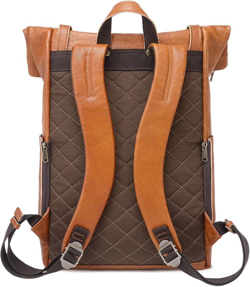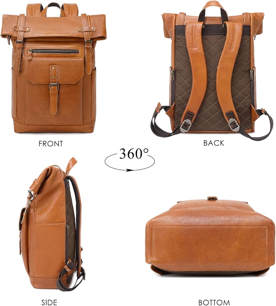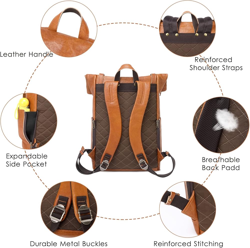 【أقصى قدر من الراحة مضمونة】احمل الكمبيوتر المحمول والملحقات الخاصة بك دون عناء، والجزء الخلفي من حقيبة الظهر الجلدية يحتوي على وسادة شبكية مسامية لحماية ظهرك من عدم الراحة ولتشجيع أقصى قدر من الدعم ويمكن أيضًا تجنب تلطيخ الملابس. تتميز حقيبة الظهر الجلدية هذه بأشرطة سميكة مبطنة قابلة للتعديل ومصممة لاسترخاء كتفيك.