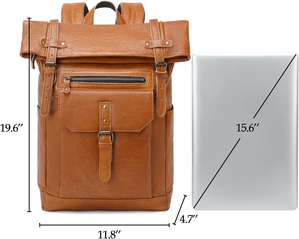 【سعة كبيرة】حجم حقيبة الظهر الجلدية للكمبيوتر المحمول 30 × 12 × 50 سم/11.8 × 4.7 × 19.6 بوصة، 1.5 كجم/3.3 رطل. يحتوي الجيب الرئيسي الكبير لحقيبة ظهر الكمبيوتر المحمول على جيب داخلي بسحاب، مع حجرة كمبيوتر محمول يمكنها استيعاب كمبيوتر محمول مقاس 15.6 بوصة. يمكن للجيب الأمامي حمل العناصر المستخدمة بشكل متكرر مثل المفاتيح والمحفظة والهاتف الخلوي والمزيد. جيوب جانبية.