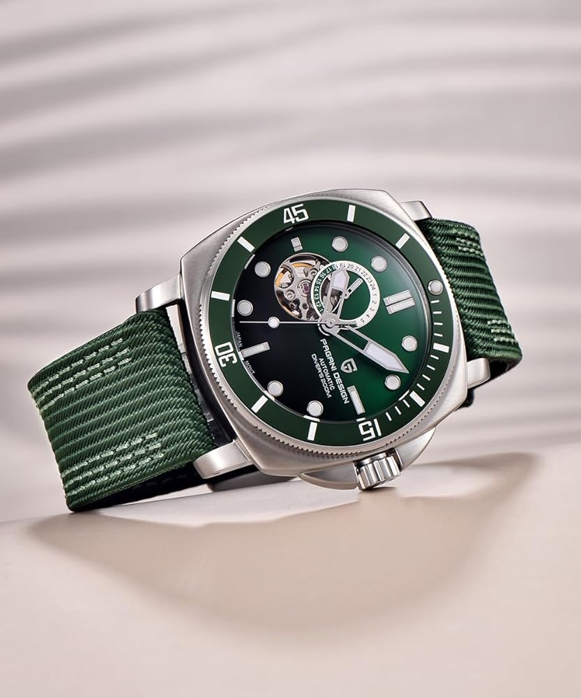 AUTOMATIC WATCH: Equipping Japanese NH39 movement, Pagani mechanical watch is very refined and accurate as well as strong and durable with a long kinetic energy reserve. No battery required, it support self-winding and manual winding. If you wear it for less than 10 hours a day, you can manually wind the watch for energy. Please rotate the crown about 20 laps when using the watch for the first time or the watch is stopped.