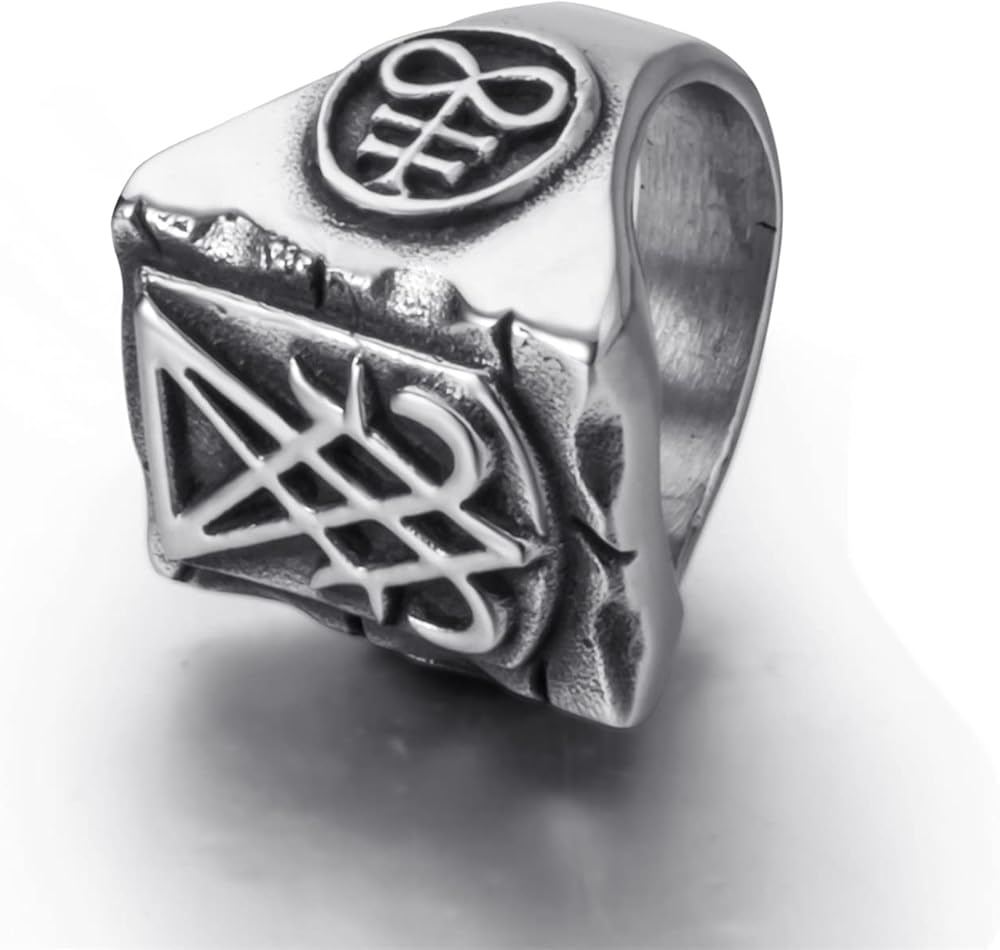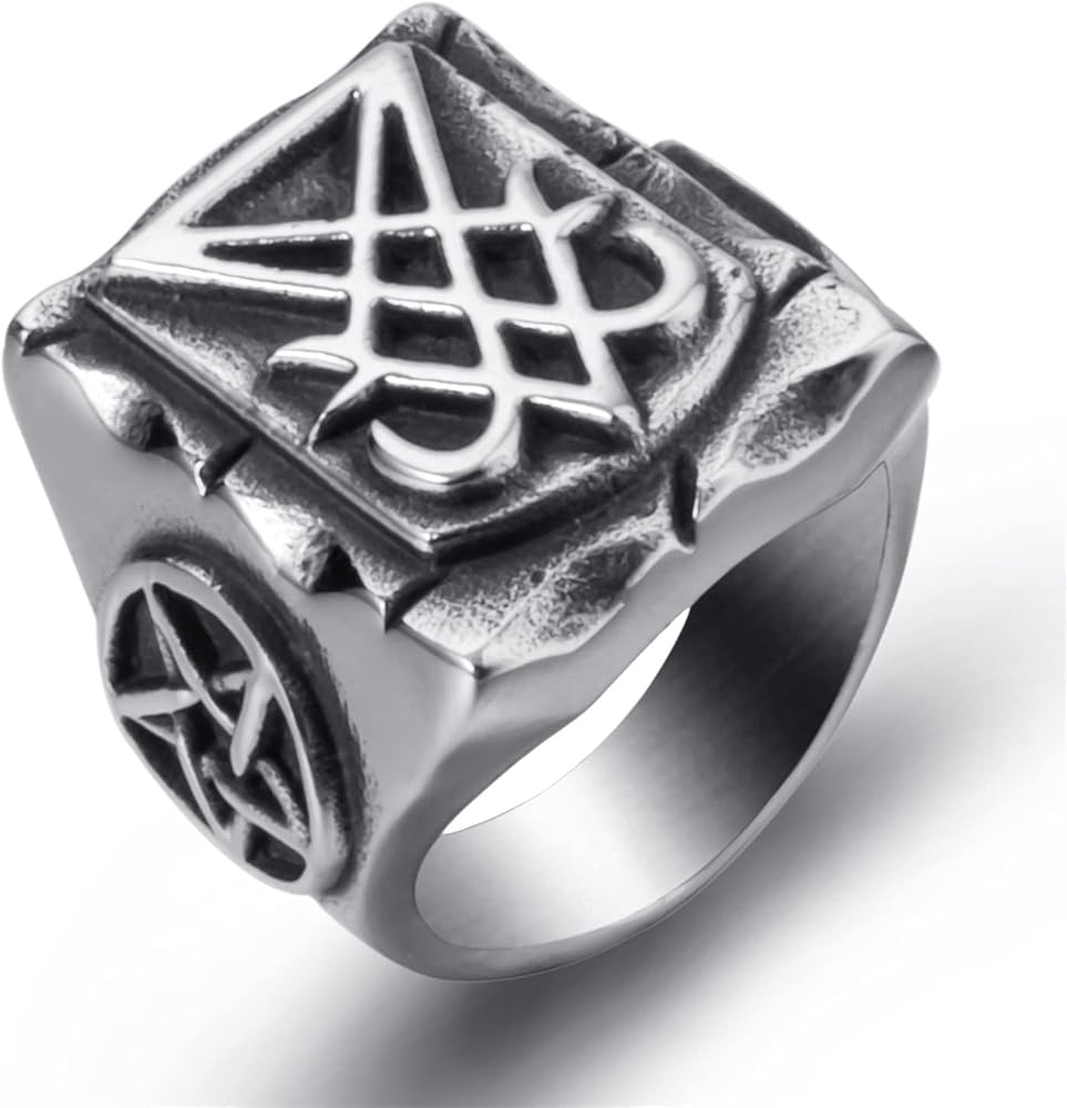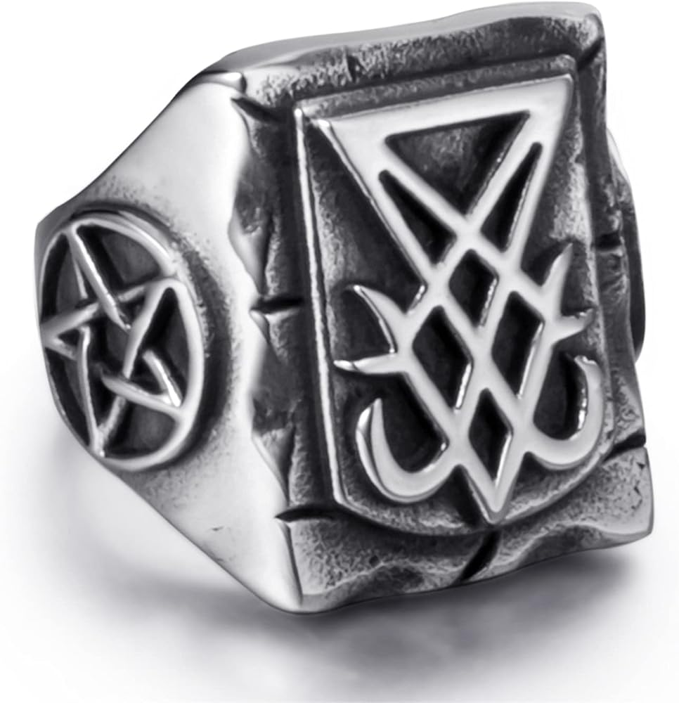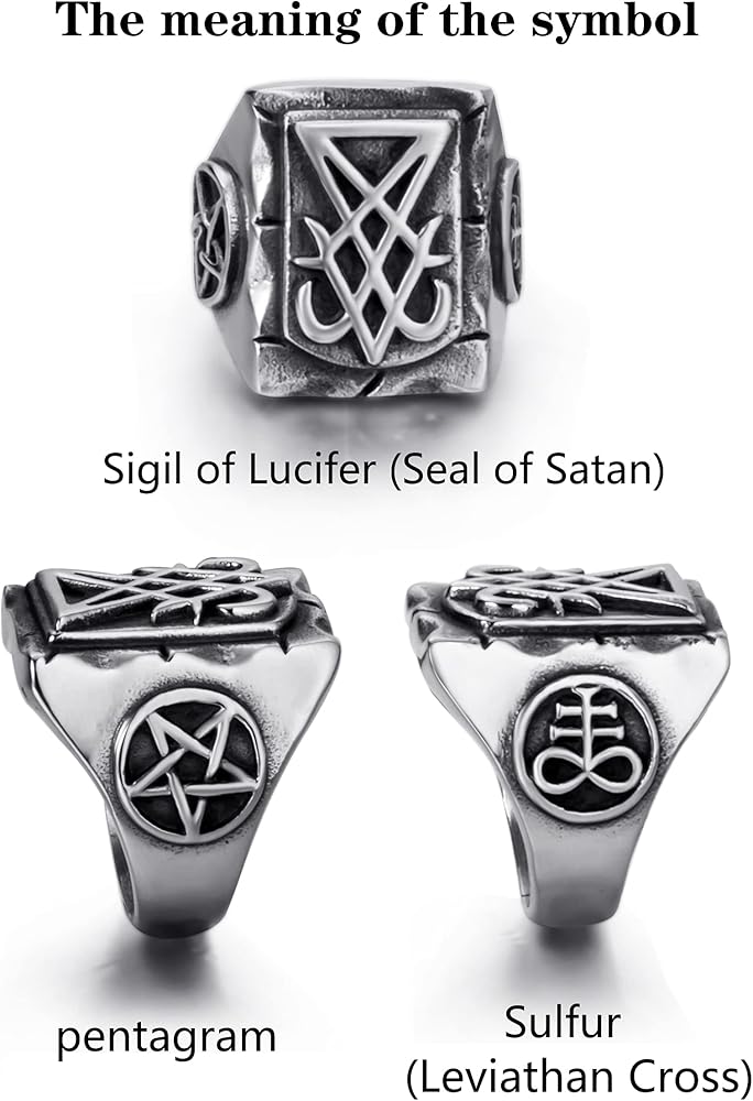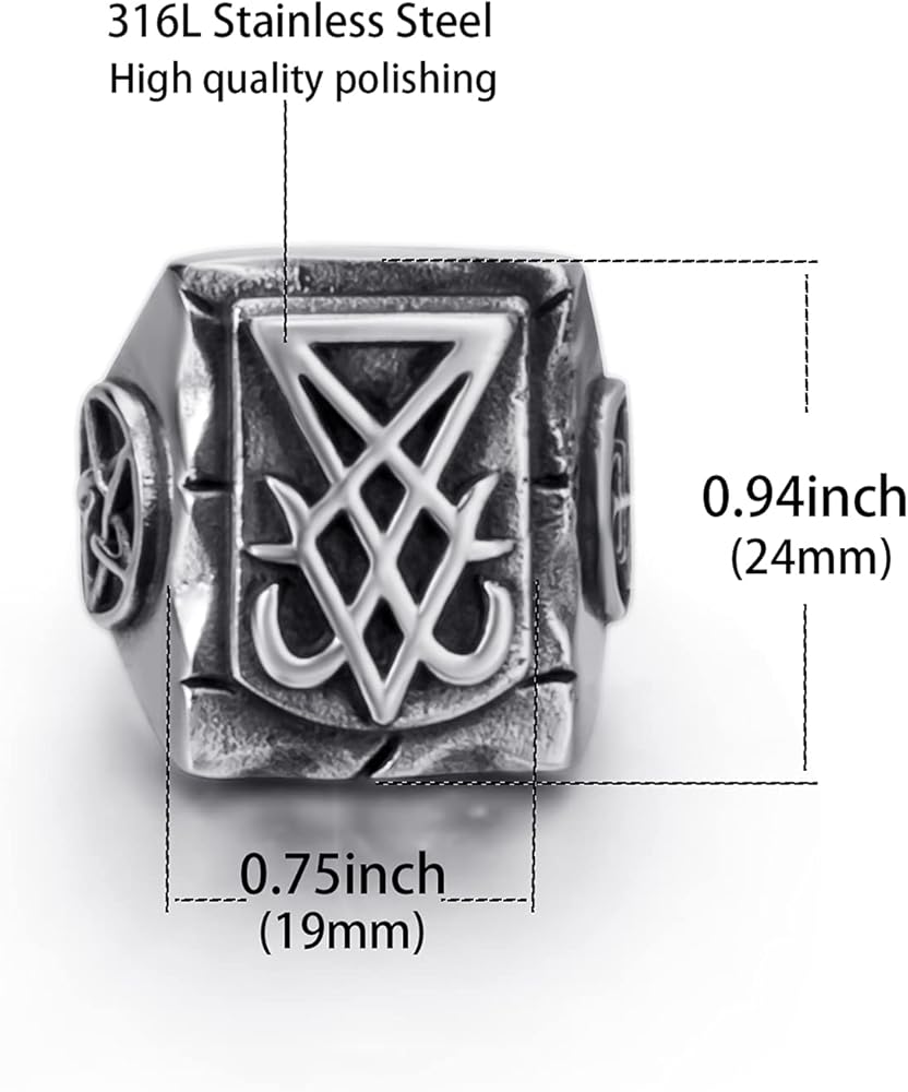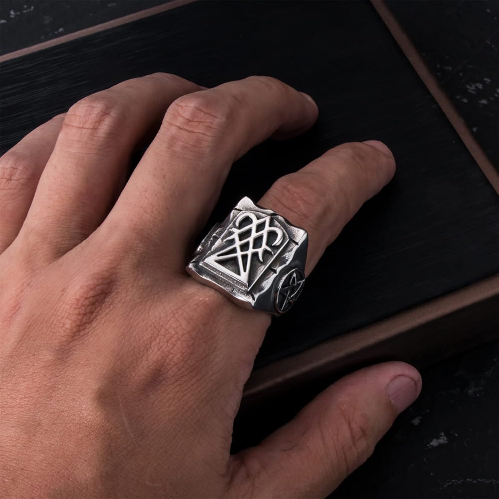 خواتم إلفاسيو الشيطانية للرجال من الفولاذ المقاوم للصدأ سيجيل لوسيفر/ختم الشيطان بافوميت الخماسي ليفياثان رمز الصليب الشيطان مجوهرات