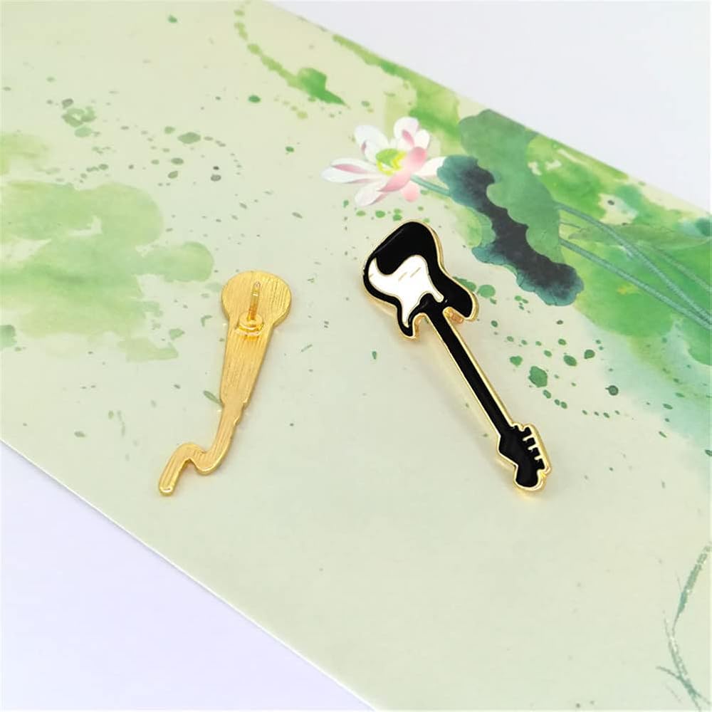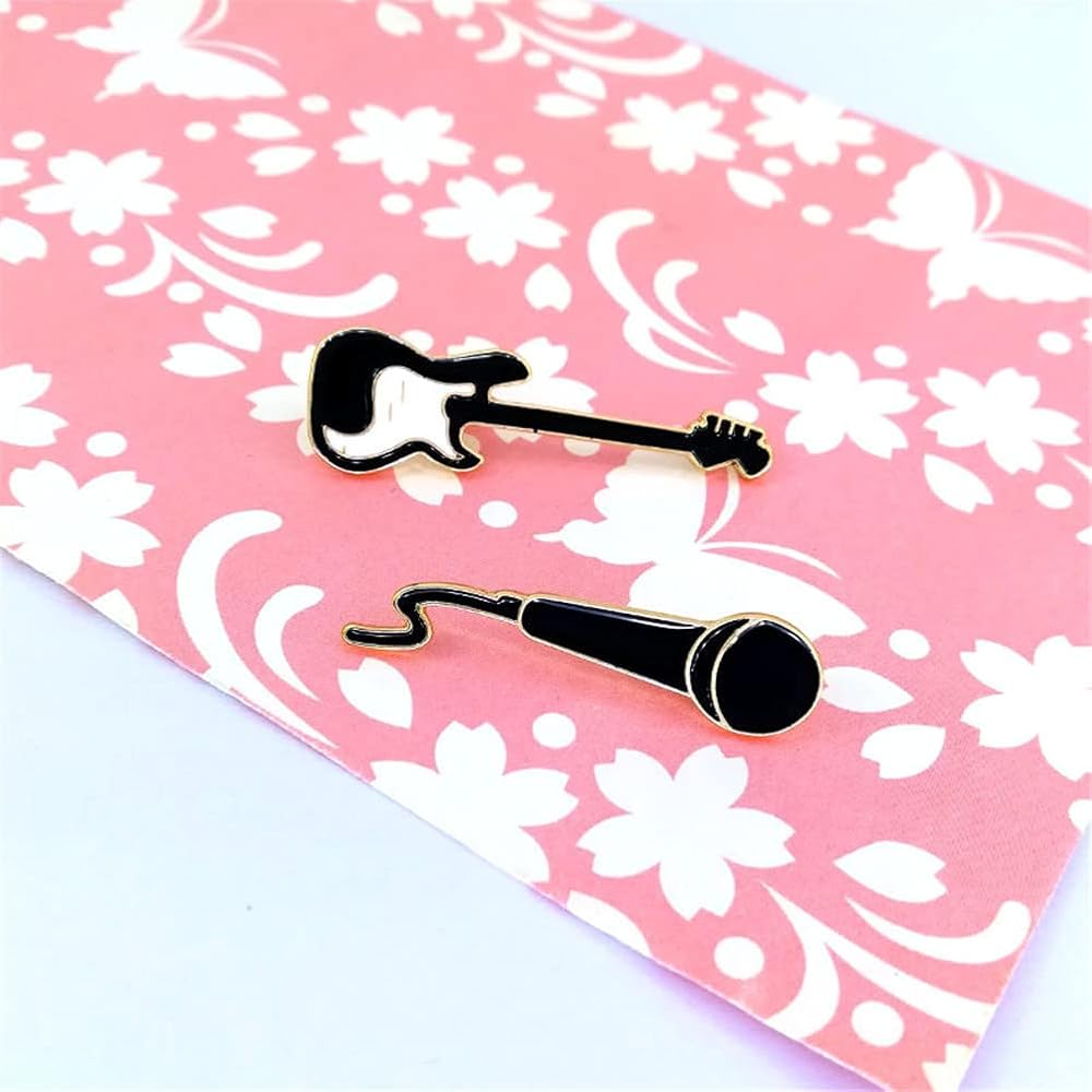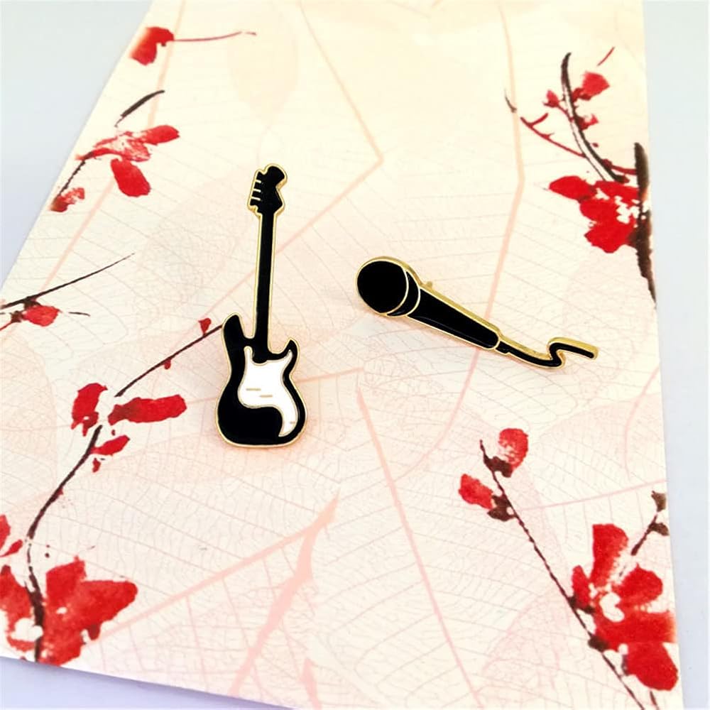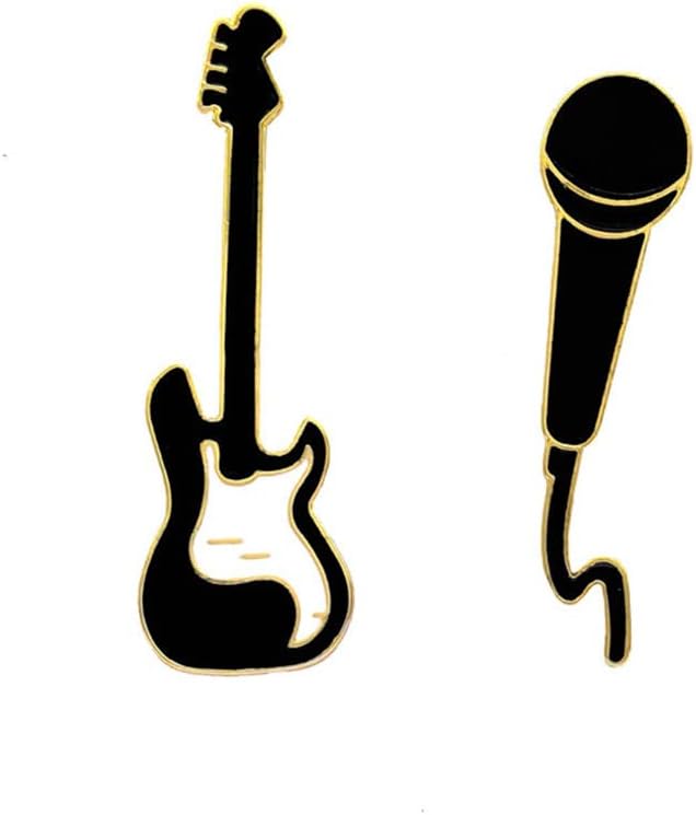 2 قطعة دبابيس مطلية بالمينا على شكل جيتار روك لطيف للميكروفون شارات موسيقى رائعة للحقيبة والملابس ودبابيس طية صدر السترة اكسسوارات هدايا مجوهرات، خليط معدني من الستيل، بدون احجار كريمة, سبيكة صلب,