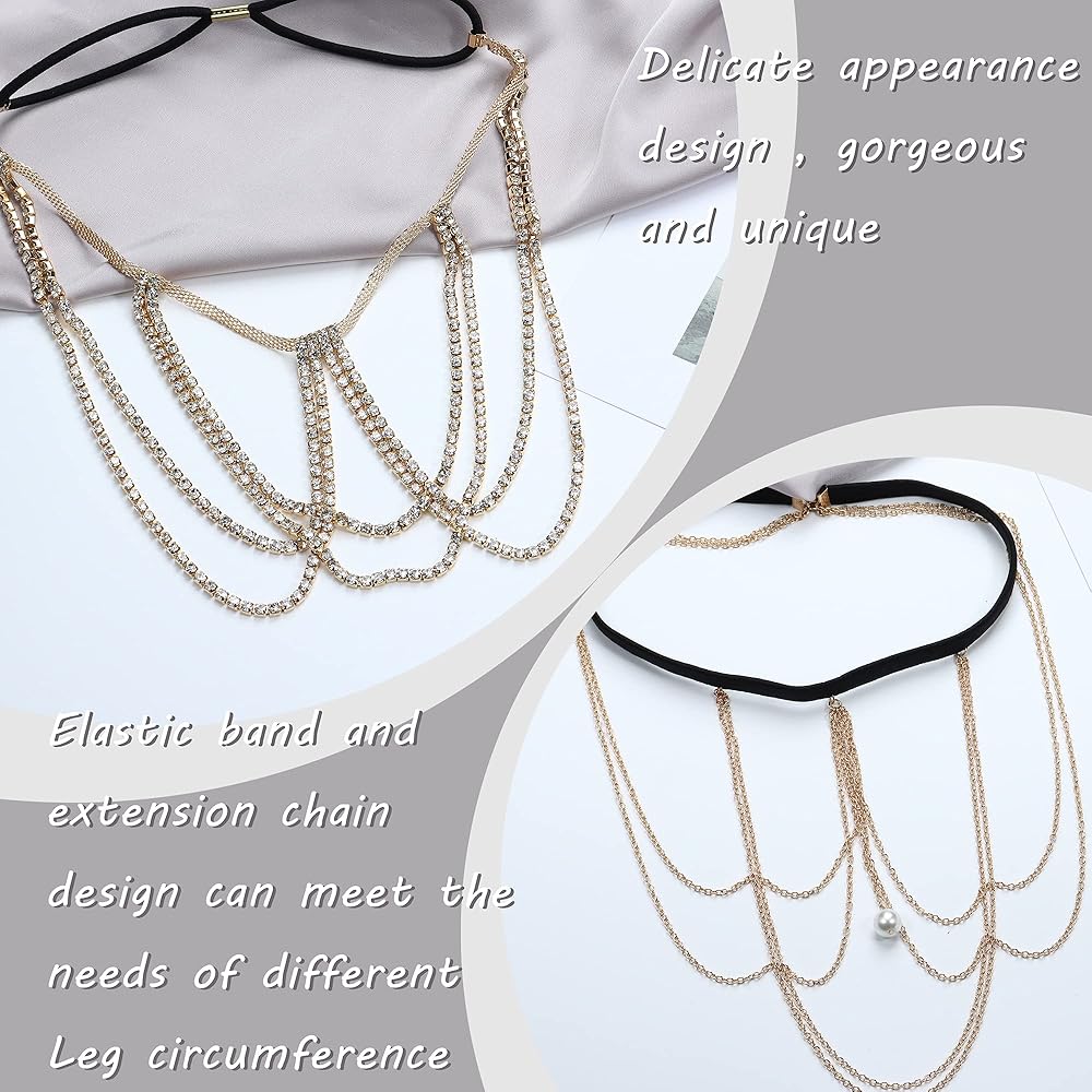 سلسلة الفخذ - سلسلة الفخذ مع حزام مطاطي، حتى للفخذين السميكين، مناسبة لمعظم الأجسام. مجوهرات الجسم بوهو الذهبية/الفضية هي الأكثر رواجًا هذا الموسم. يمكن مطابقة مجوهرات الساق مع أي ملابس لديك. يمكن أن يسلط الضوء على جسمك المثالي والمثير.