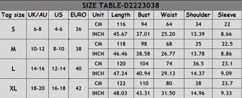 - دليل المقاسات: S=US 4-6، M=US 8-10، L=US 12-14، XL=16، يرجى اختيار المقاس الصحيح وفقًا لجدول المقاسات في الصورة