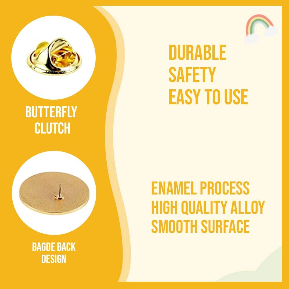 🌈سطح أملس لعملية المينا المؤهلة: دبابيس المينا الخاصة بنا مصنوعة من عملية إنتاج متسلسلة. للتأكد من ملمس المعدن الناعم على السطح، فإن التحكم في الإنتاج صارم للغاية ويستغرق من 7 إلى 10 أيام عمل لتصميم شارات الدبوس. لا يتلاشى على الإطلاق.