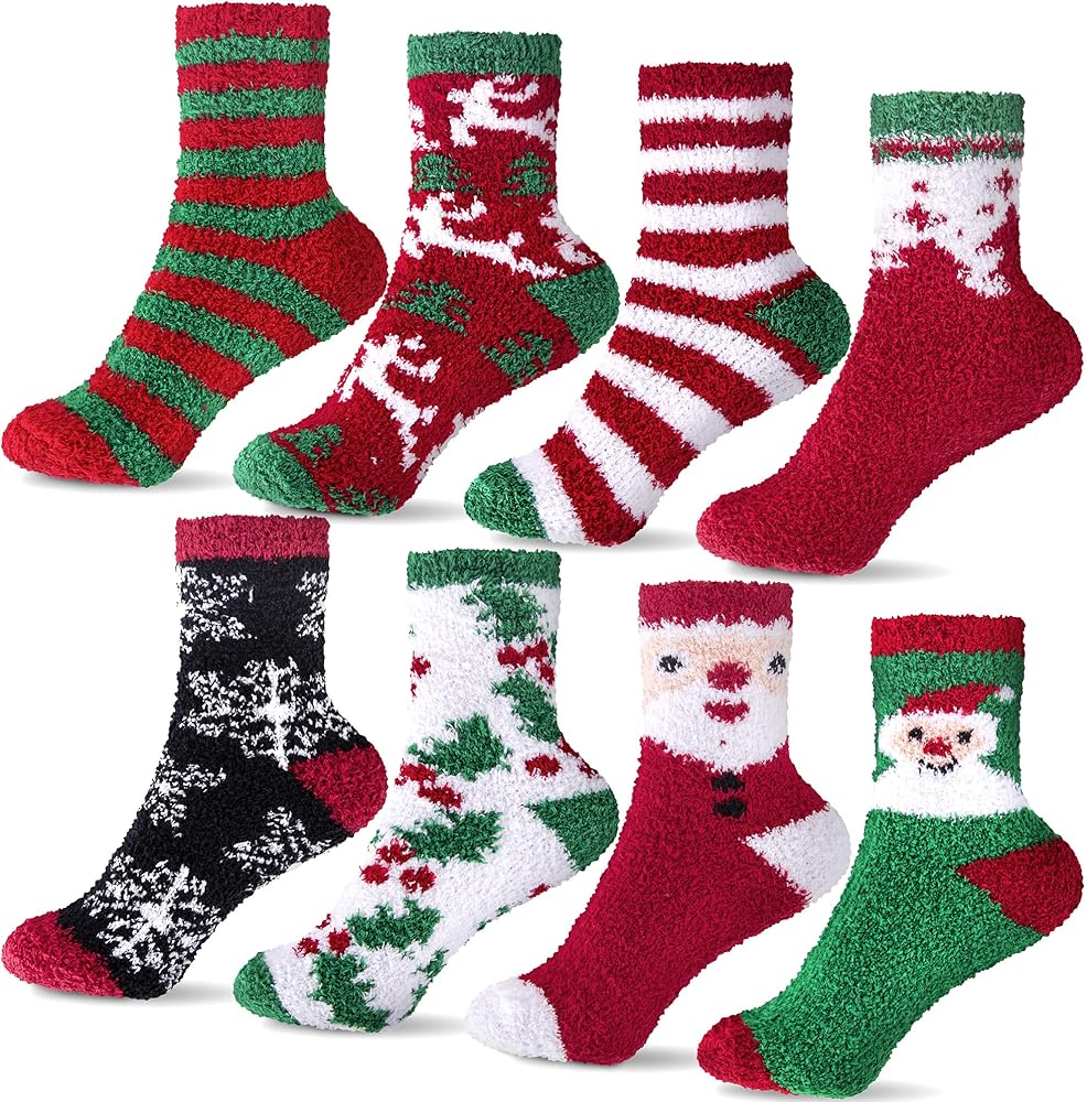 الكمية واللون - تتضمن العبوة 8 أزواج من جوارب عيد الميلاد بأنماط مختلفة، مع خطوط وسانتا كلوز وإلك وندفة الثلج، وكمية كافية من جوارب عيد الميلاد الغامضة لتلبية احتياجاتك واستبدال احتياجاتك.