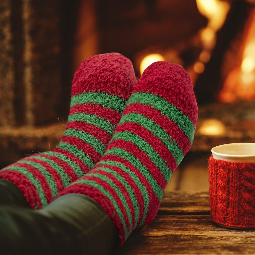 رقيق ومريح - جوارب عيد الميلاد مصنوعة من الصوف المرجاني عالي الجودة، وملمس رقيق، ناعم الملمس ومرن، الشريط المطاطي يسمح لجوارب عيد الميلاد الغامضة بعدم سهولة الارتخاء أو التحرك، مريحة للأنشطة اليومية