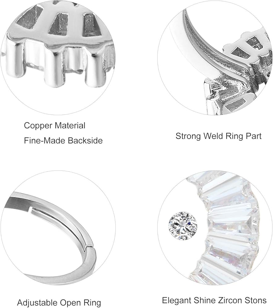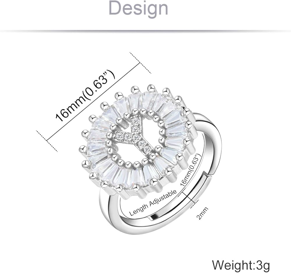 • ♥المقاس: عرض حرف الزركونيا المكعب: 16 مم (0.63 بوصة)، عرض الحلقة: 2 مم، الوزن: 3 جرام. خفيف الوزن ومريح في الارتداء.