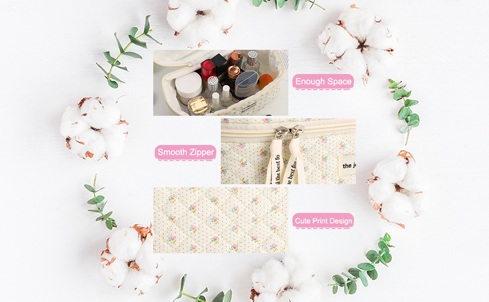 حقائب المكياج اللطيفة مصنوعة من القطن بشكل أساسي وموثوقة ومستقرة، والتي يمكن الاحتفاظ بها لفترة طويلة، ناعمة وخفيفة الوزن وذات ملمس جيد، ليس من السهل كسرها أو تشويهها أو بهتان لونها.