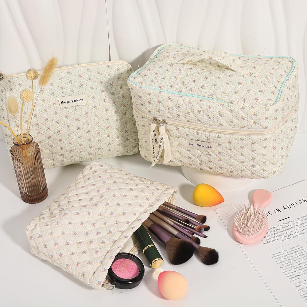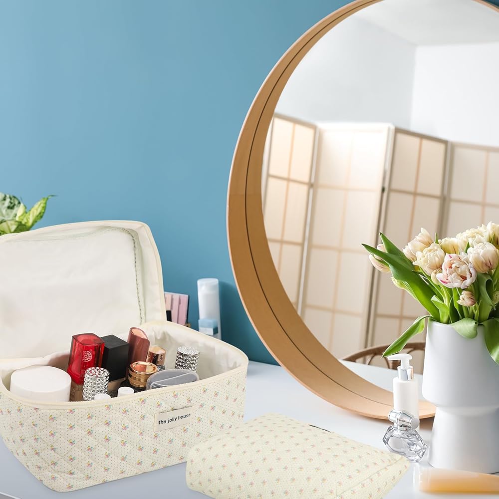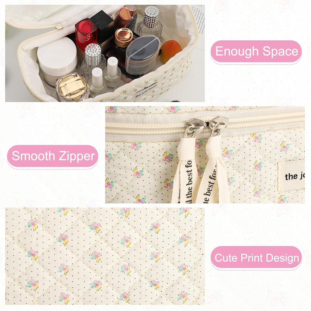 【مادة فاخرة】شنطة المكياج المبطنة مصنوعة من قماش قطني عالي الجودة، وهي ليست ناعمة ومريحة الملمس فحسب، بل يسهل العناية بها أيضًا. السحاب ناعم ومتين لسهولة الوصول