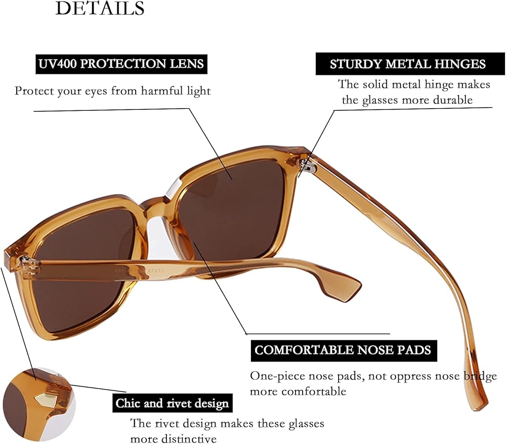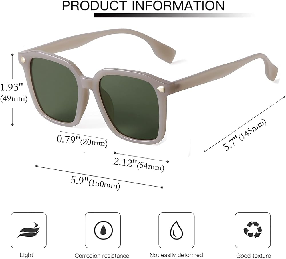 نظارات شمسية مربعة كبيرة الحجم - يمكن لهذه النظارات الشمسية المربعة كبيرة الحجم أن تحجب الأشعة فوق البنفسجية فئة A والأشعة فوق البنفسجية فئة B الضارة بنسبة 100%، وتحمي عينيك من أضرار الأشعة فوق البنفسجية طويلة الأمد.
