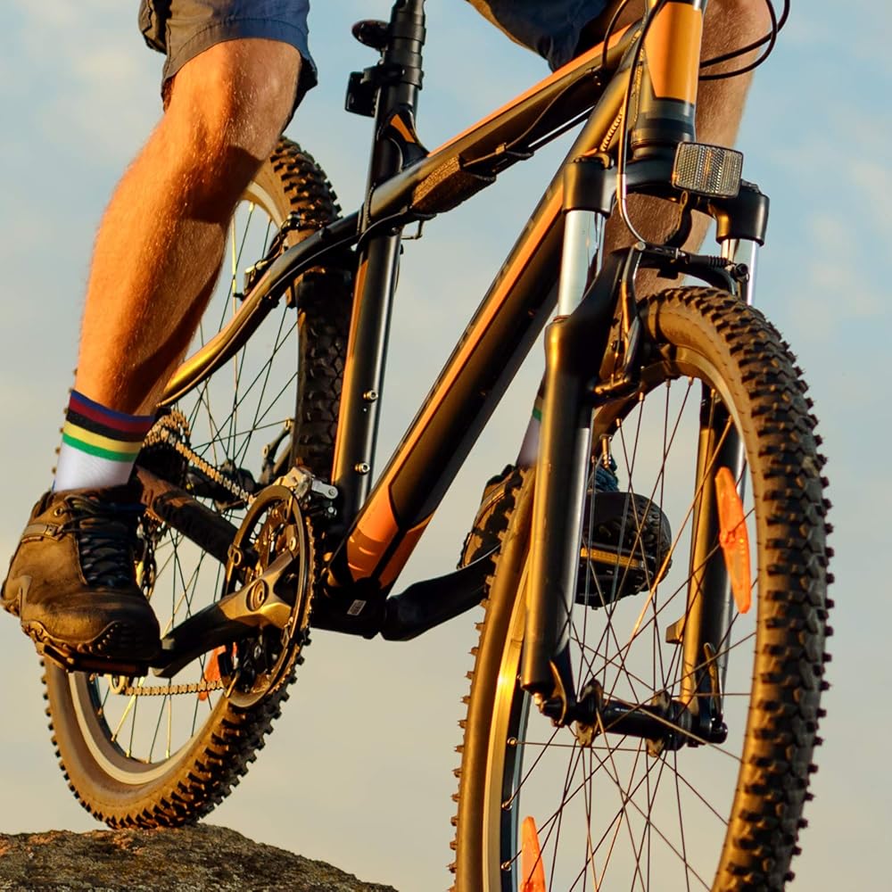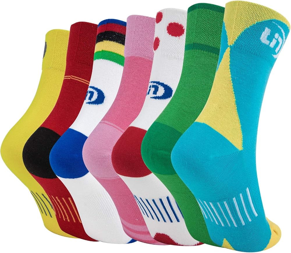 ★【نمط ألوان خاص】 تصميم مستوحى من لون جوارب الدراجة هو من قميص البطل الرمزي والمهم للغاية في أحداث ركوب الدراجات الشهيرة. سواء كان سباق الطرق أو ركوب الدراجات في الجبال أو الدوران في صالة الألعاب الرياضية أو ركوب الدراجات في المدينة. اللون الزاهي والمبتكر يجعلك رائعتين ومميزة.
