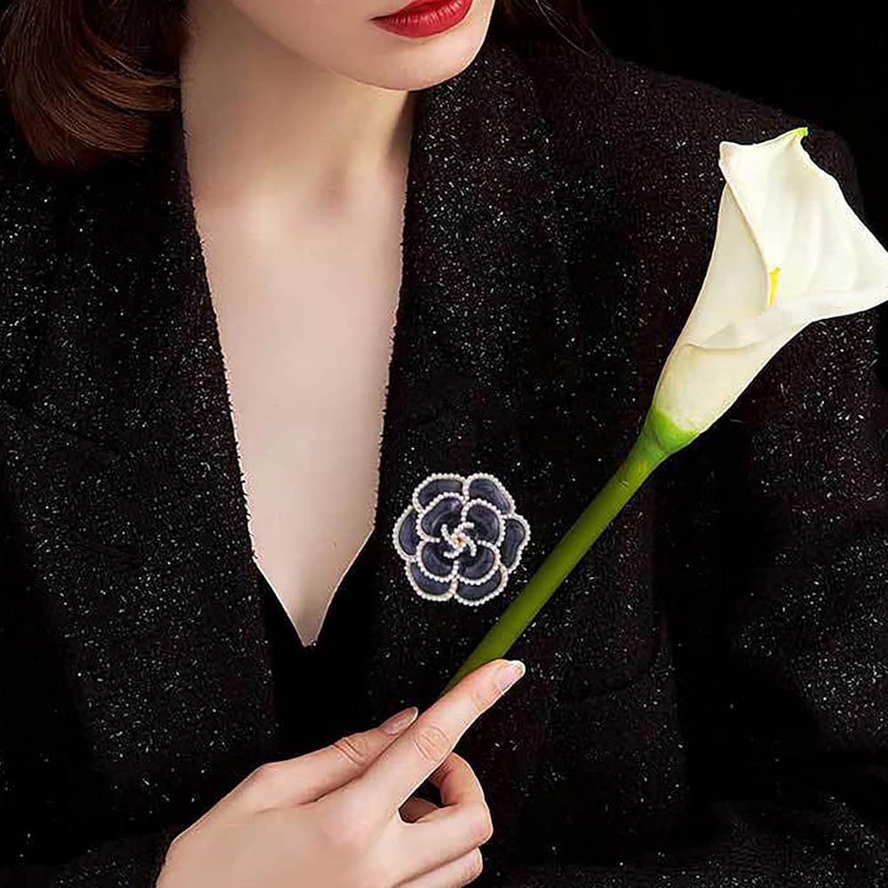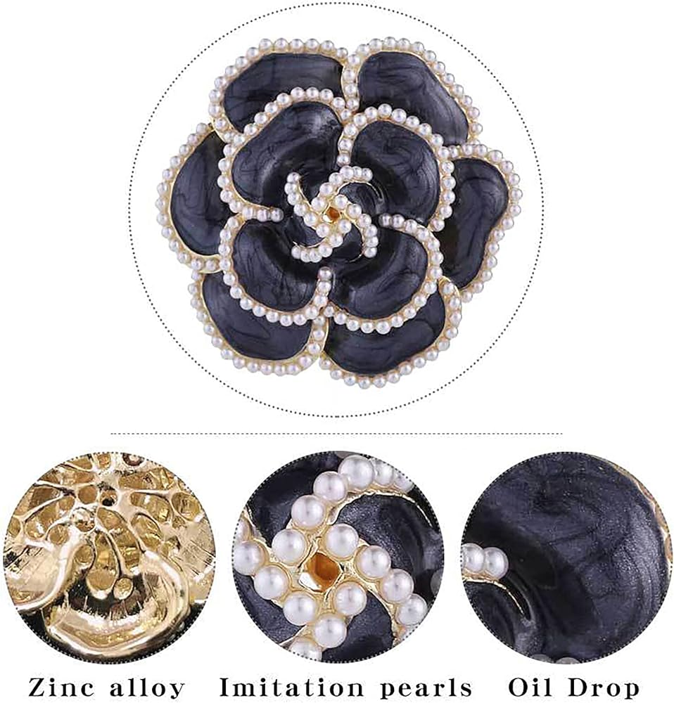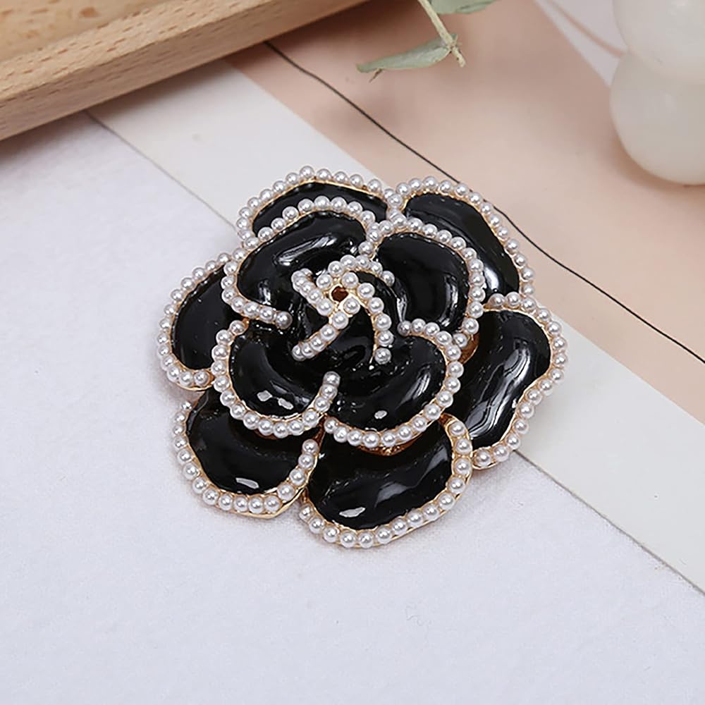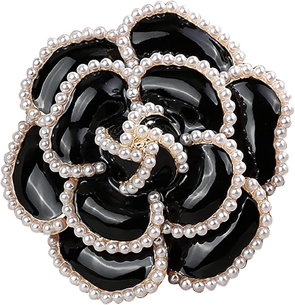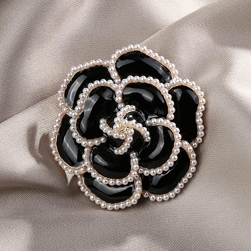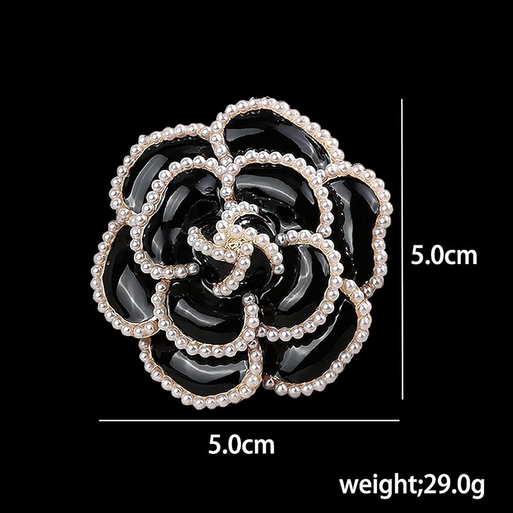 دبوس بروش على شكل وردة سوداء على شكل بتلات لؤلؤية، بروش انيق ورائع للنساء لحفلات الزفاف والولائم والقمصان والفساتين، معدن، لؤلؤ صناعي