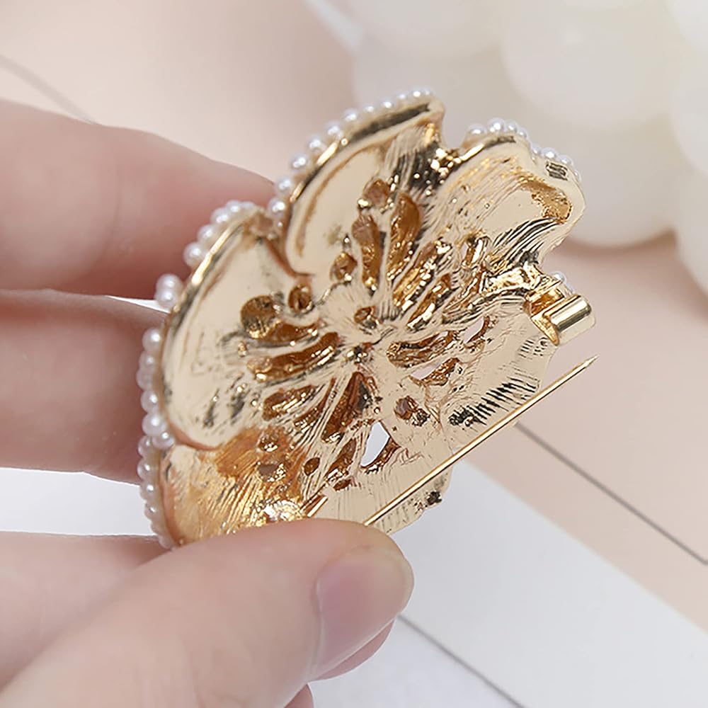 • مصنوعة من خليط معدني متين، مزينة بلآلئ صناعية مع أحجار الراين الصغيرة عالية الجودة حول اللؤلؤ الحرفي.