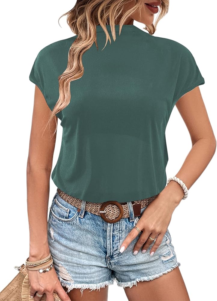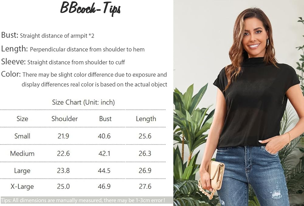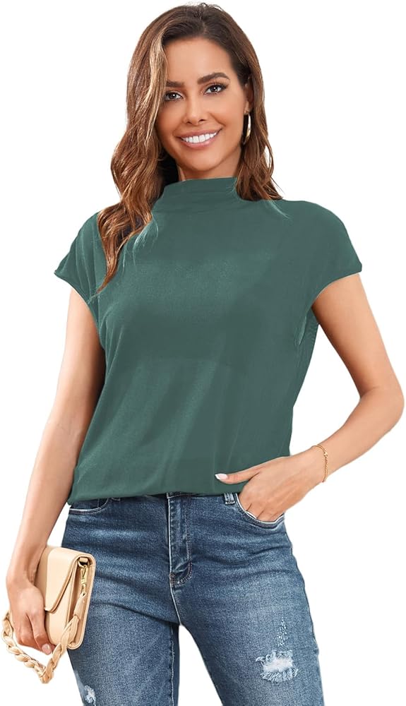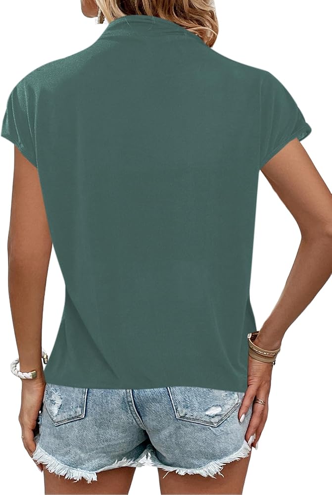 About BBcoch Mock Neck Business Casual Tops for Women Short Sleeve Summer Blouses Casual Crop Tops