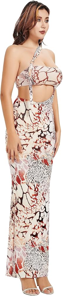 Design:Novelty Dresses mesh printed dress for women 2023, halter dress ,strapless printed sexy dress ,cut out dresses ,one shoulder .summer dress sundress for women ,sexy beach swimming pool dress.