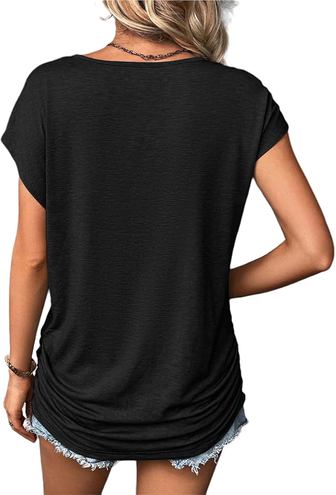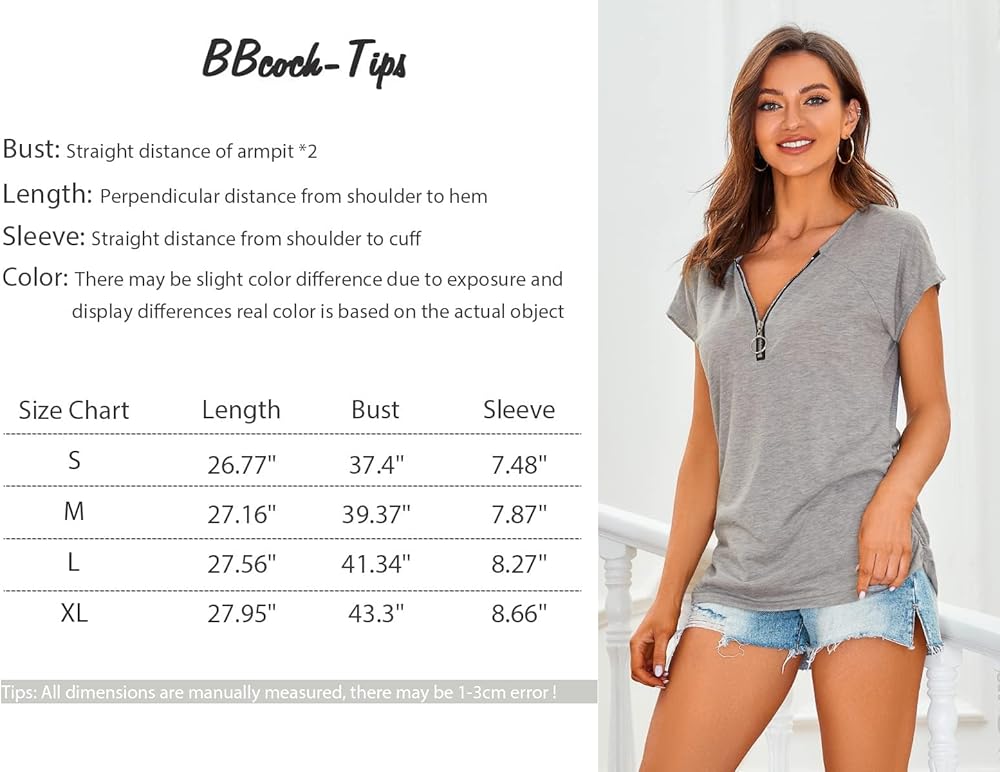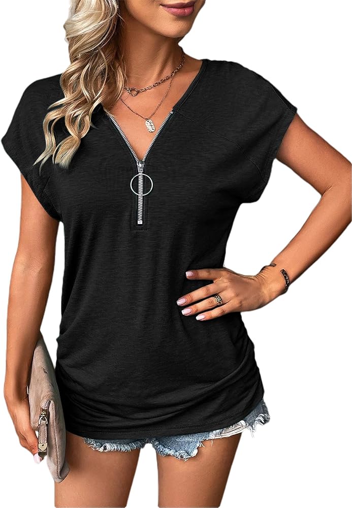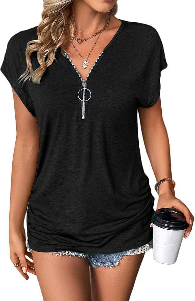 Design: Side ruched tops for women is designed to short sleeve, solid color, zippered v neck add elegant, side ruched, and slim fitting suitable for all occasions