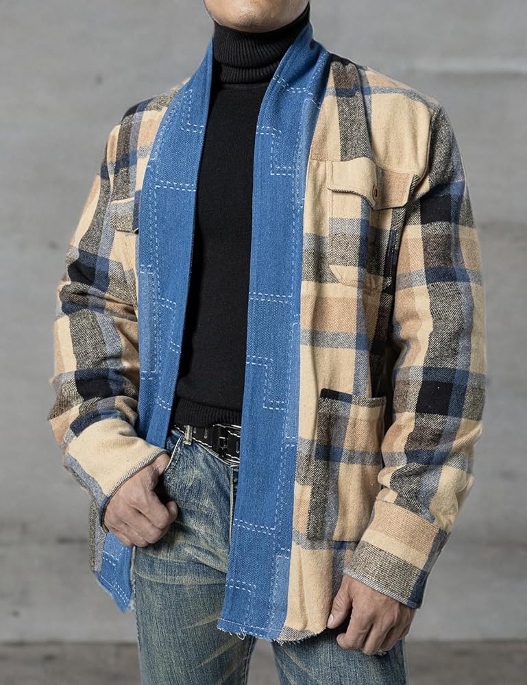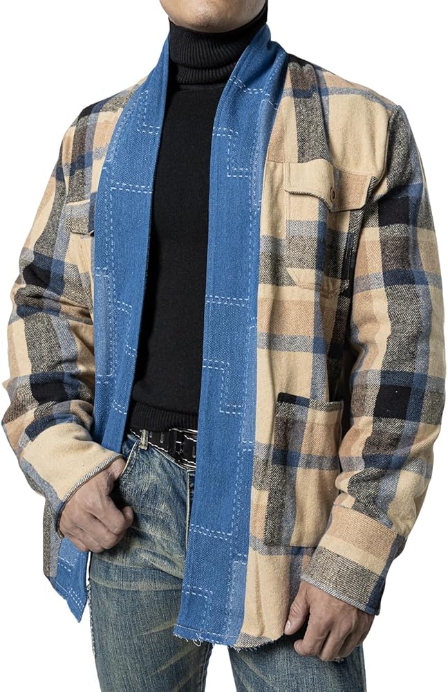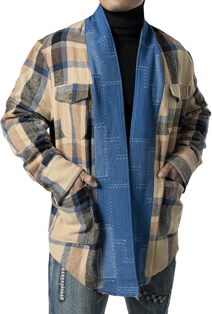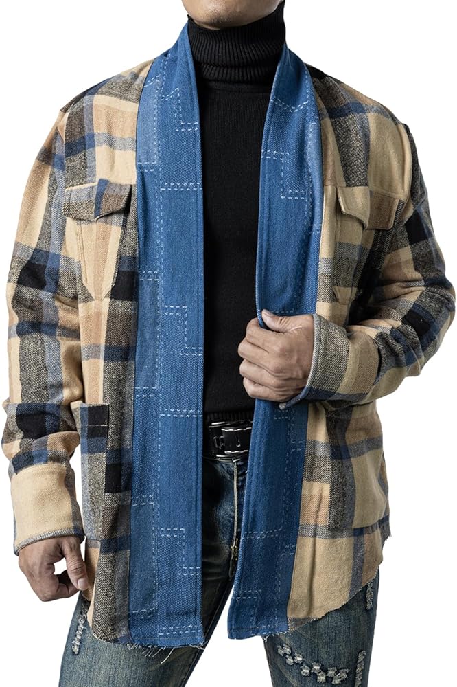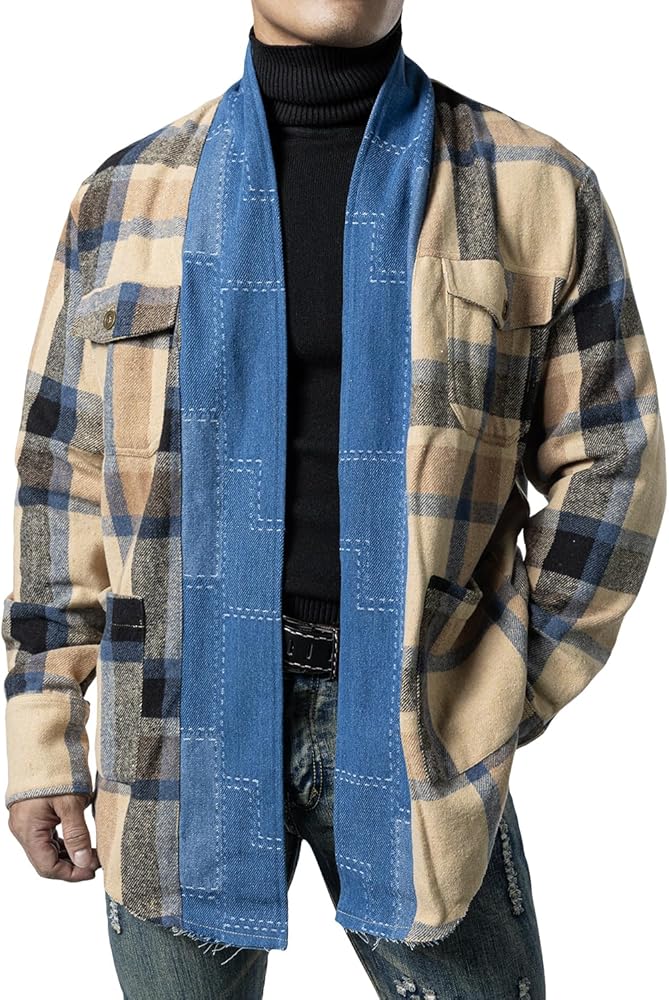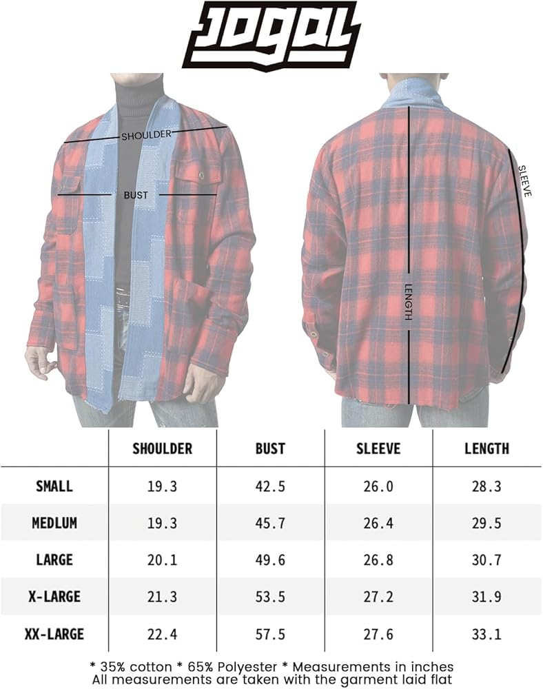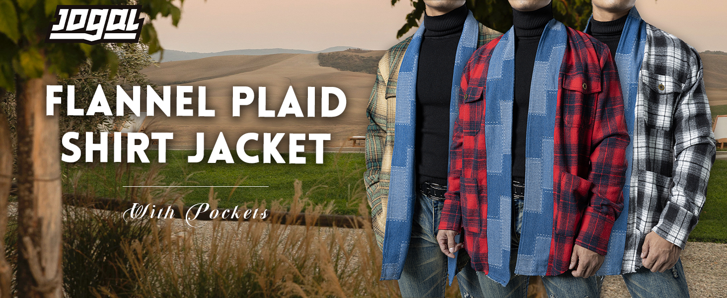 جاكيت قميص رجالي من JOGAL من الفلانيل بأكمام طويلة كاجوال مفتوح من الأمام مع جيوب