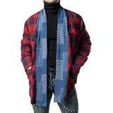 • مقاس عادي، ياقة شال، نمط مربعات، تصميم حاشية غير متماثلة.