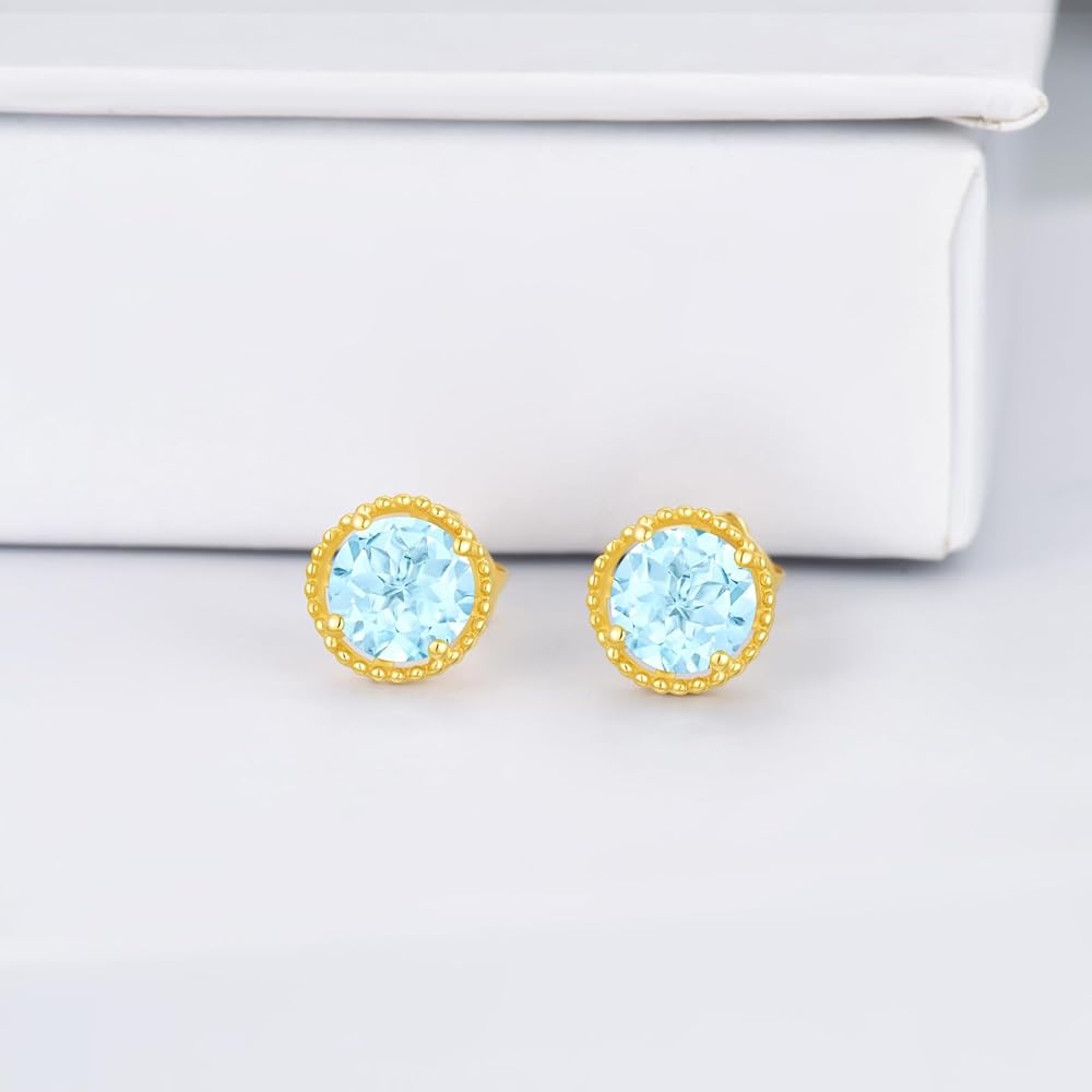 💗【مقاس الأقراط】 قطر الأقراط: 6.5 ملم (0.25 انش). مقاس أقراط توباز أزرق مثالي مصمم ليناسب الجميع بسهولة.