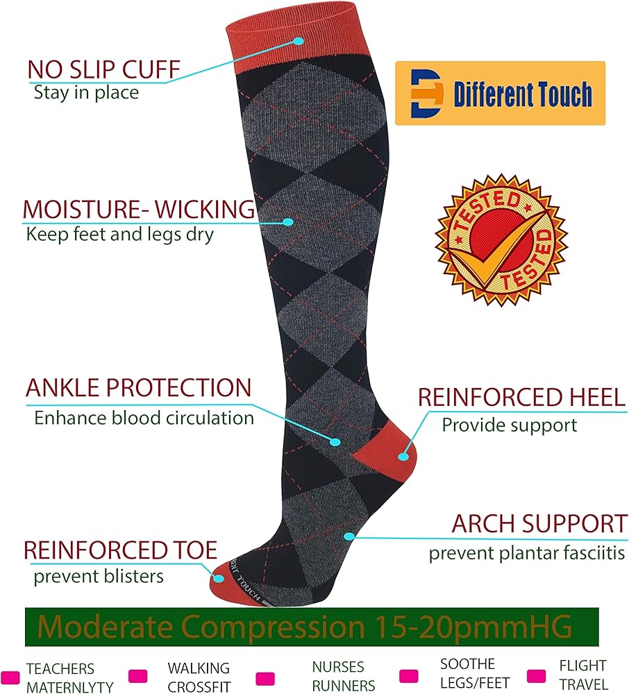 مثالي للرياضة والارتداء اليومي: أفضل الجوارب للجري، والرياضات الرياضية، والتنس، والوذمة، والسكري، والدوالي، والسفر، والحمل، والتنس، وجبائر الساق، والرضاعة أو الارتداء اليومي للحفلات أو في المكتب