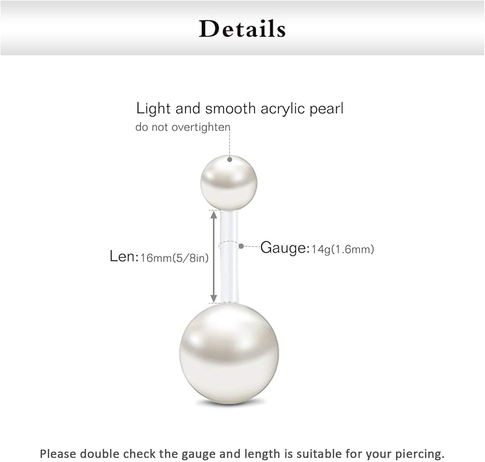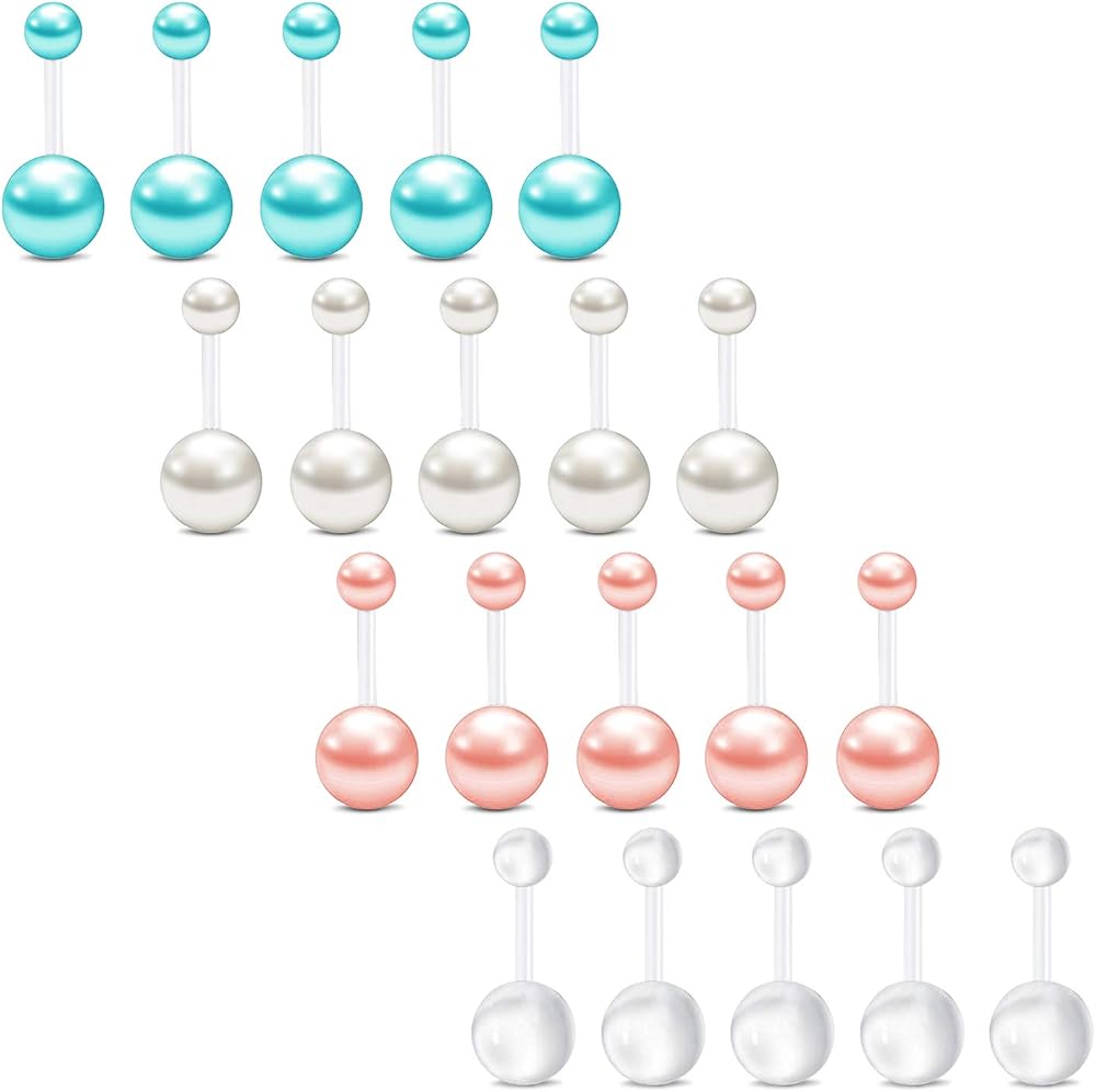FECTAS 14 جرام حلقات زر البطن البلاستيكية شفافة للأشعة فوق البنفسجية مرنة اللؤلؤ حلقة البطن السرة منحني طويل الحديد للنساء الفتيات 10/12/14/16/18 مم